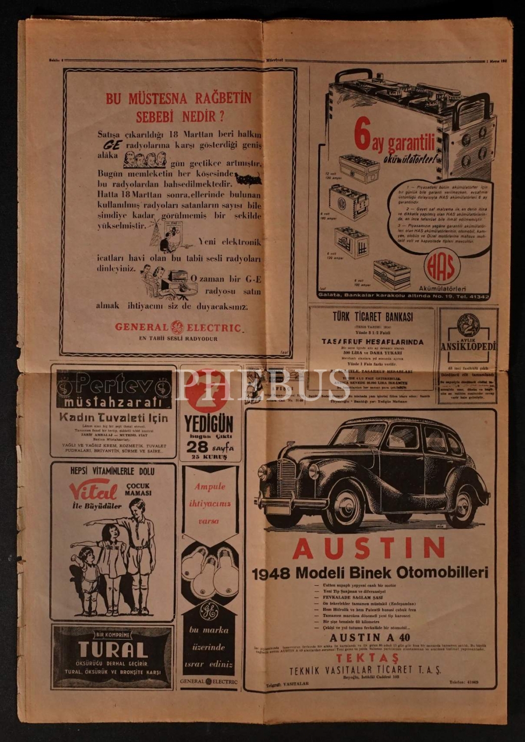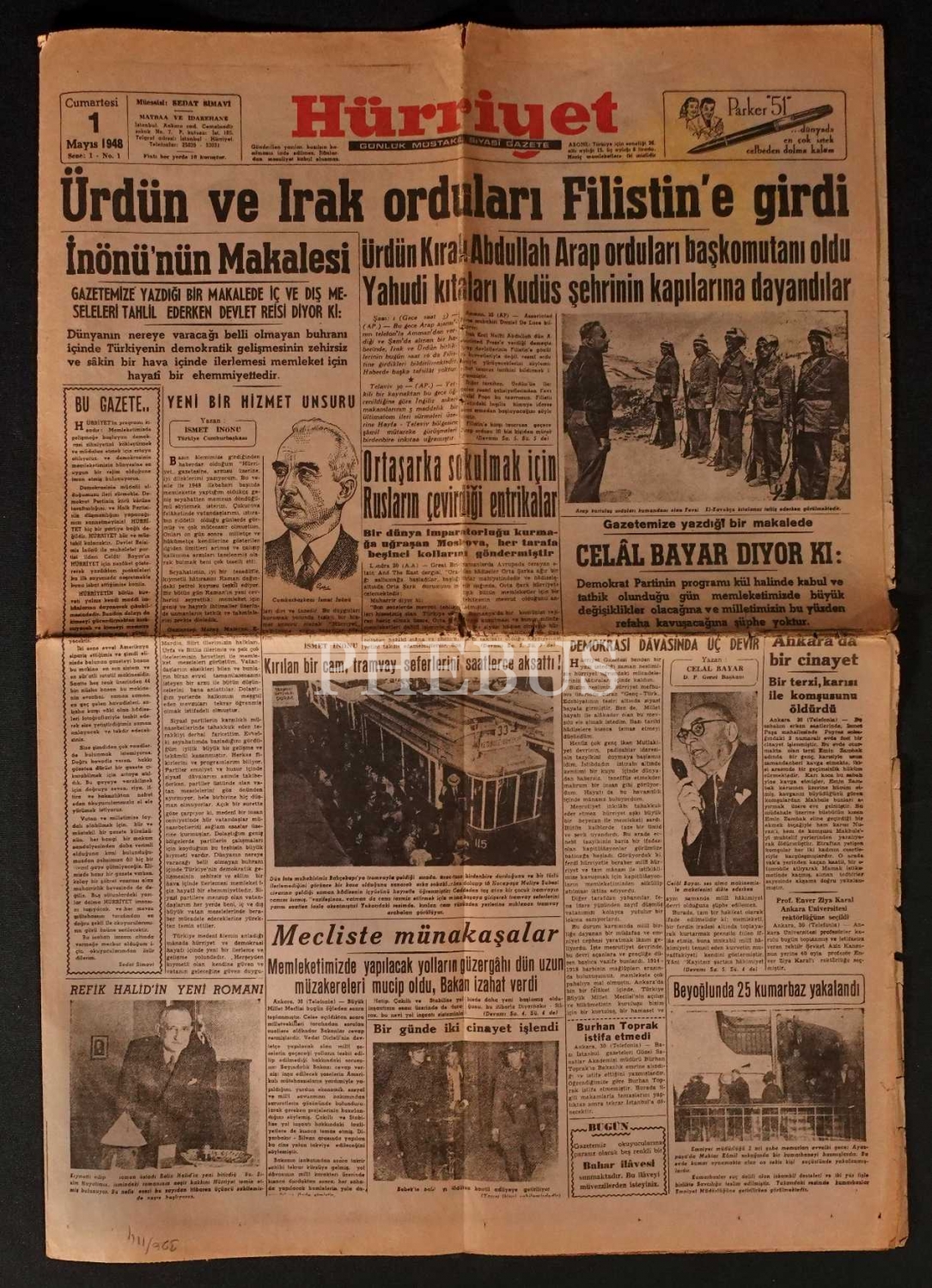 HÜRRİYET gazetesinin 1 Mayıs 1948 tarihli ilk nüshası, 6 sayfa, 58x40 cm...