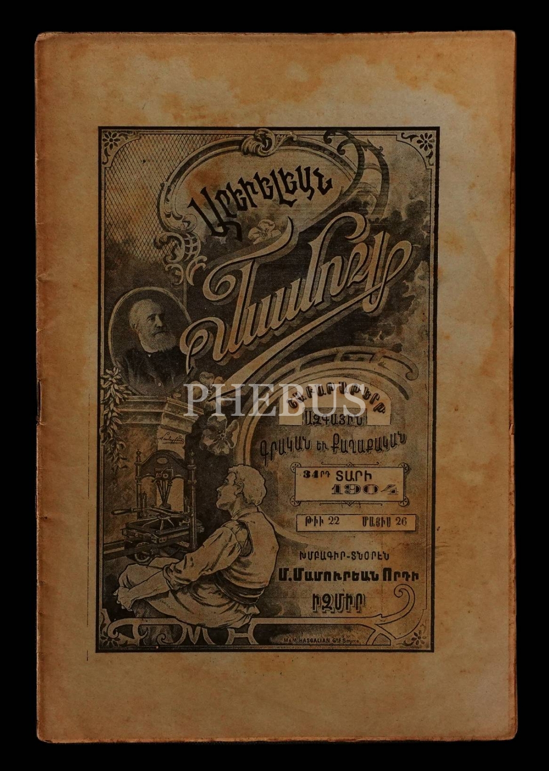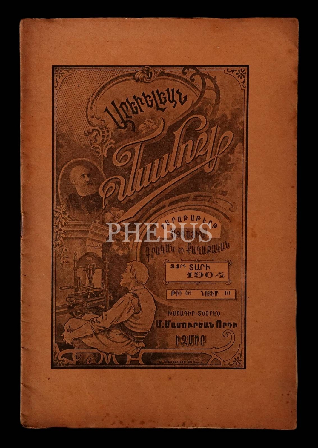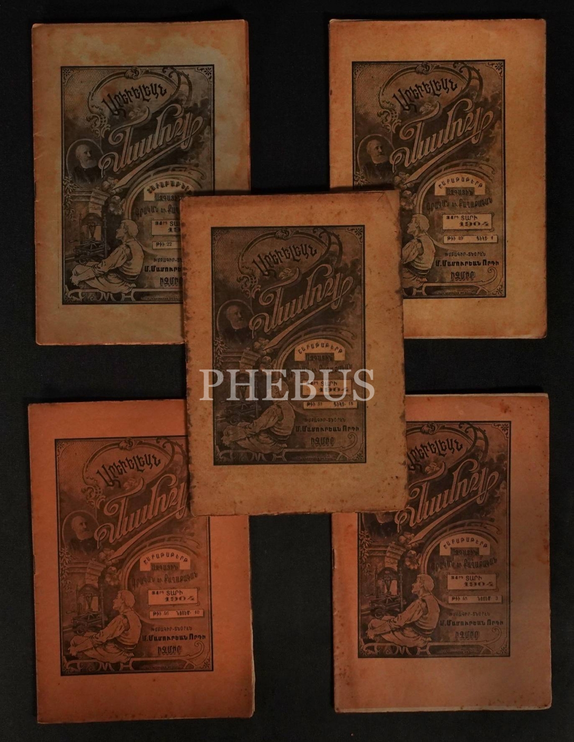 Ermenice AREVELYAN MECMUASI´nın 1904 tarihli 22, 45, 46, 49 ve 51. sayıları, İzmir M. Mamuryan Matbaası, 16x25 cm.