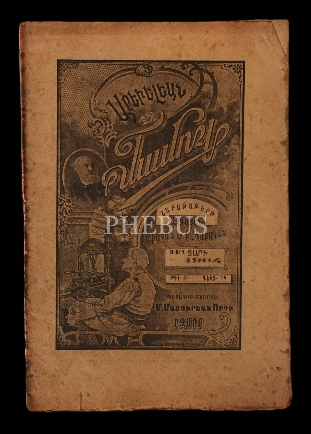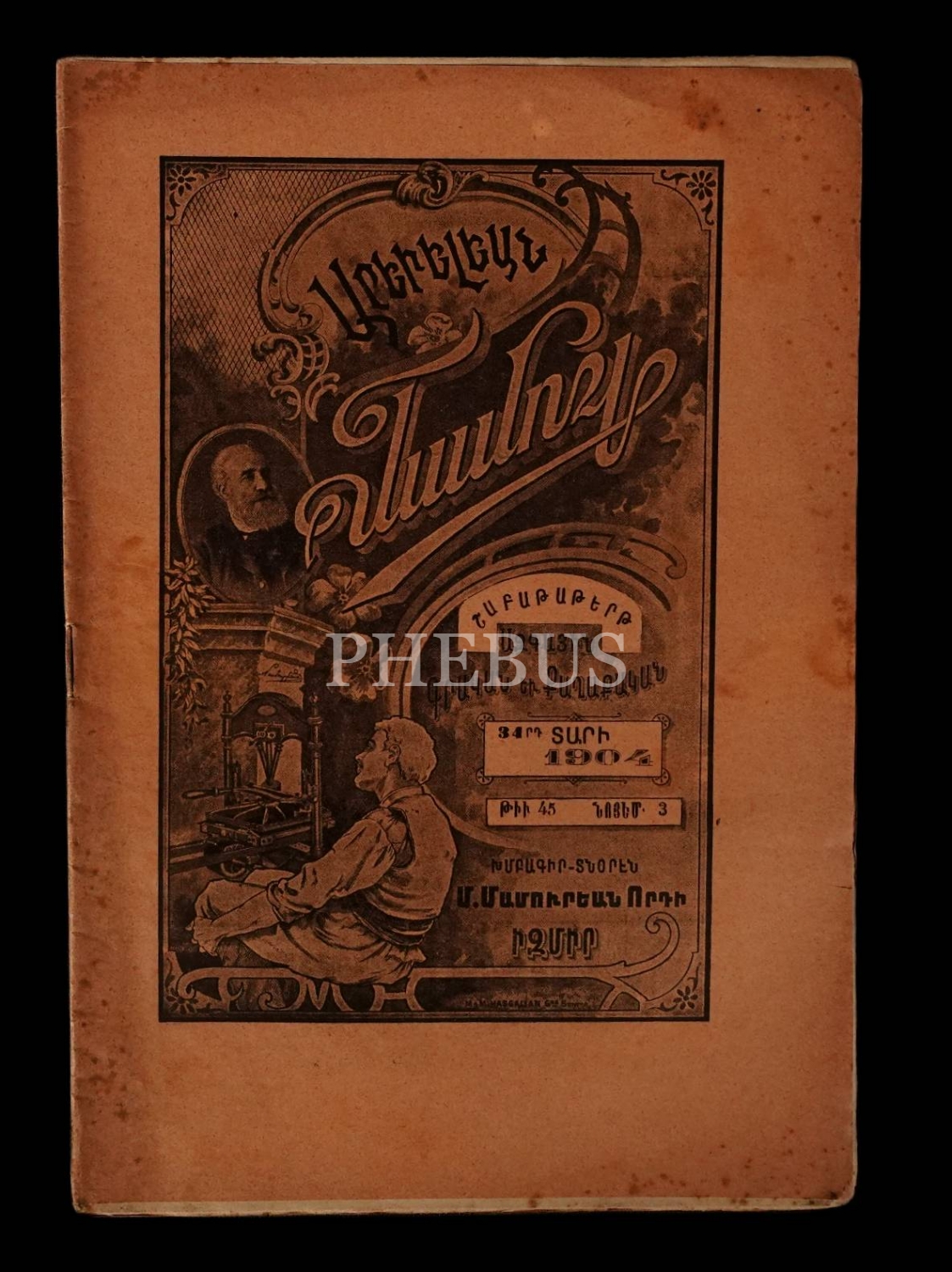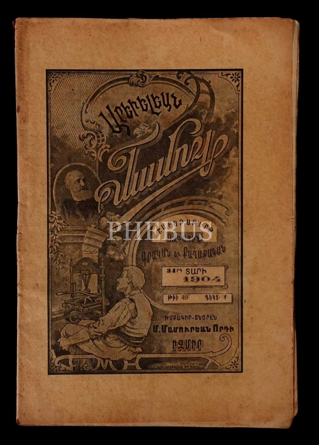 Ermenice AREVELYAN MECMUASI´nın 1904 tarihli 22, 45, 46, 49 ve 51. sayıları, İzmir M. Mamuryan Matbaası, 16x25 cm.
