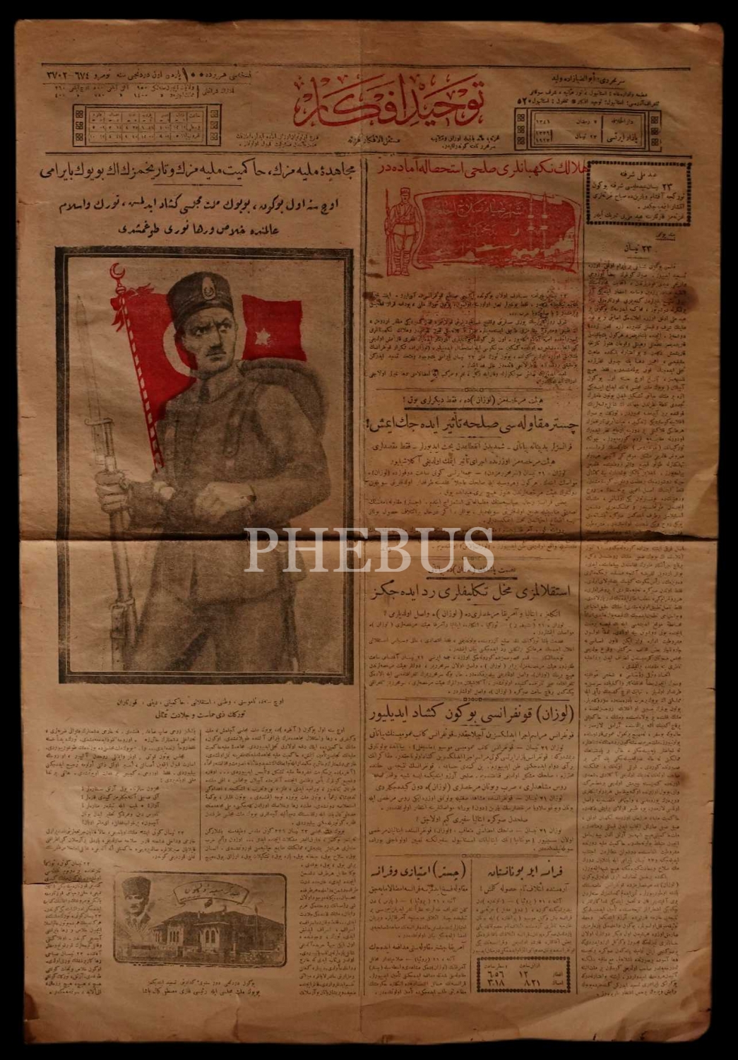 Türkiye Büyük Millet Meclisi´nin açılışının 3. senesi dolayısıyla yayımlanan 23 Nisan 1923 tarihli TEVHİD-İ EFKAR gazetesi, 4 sayfa, 43x63 cm...