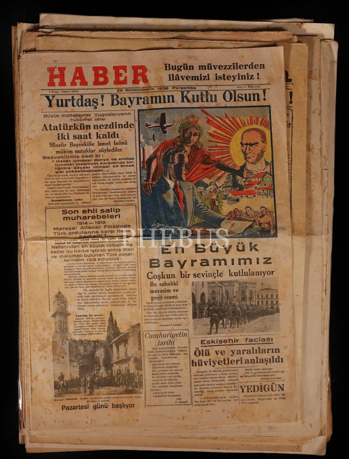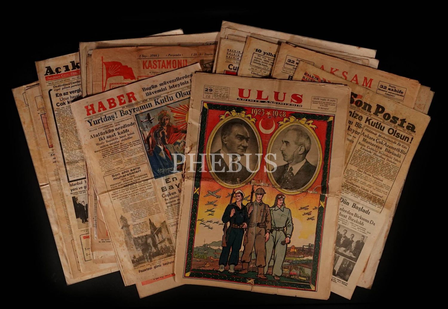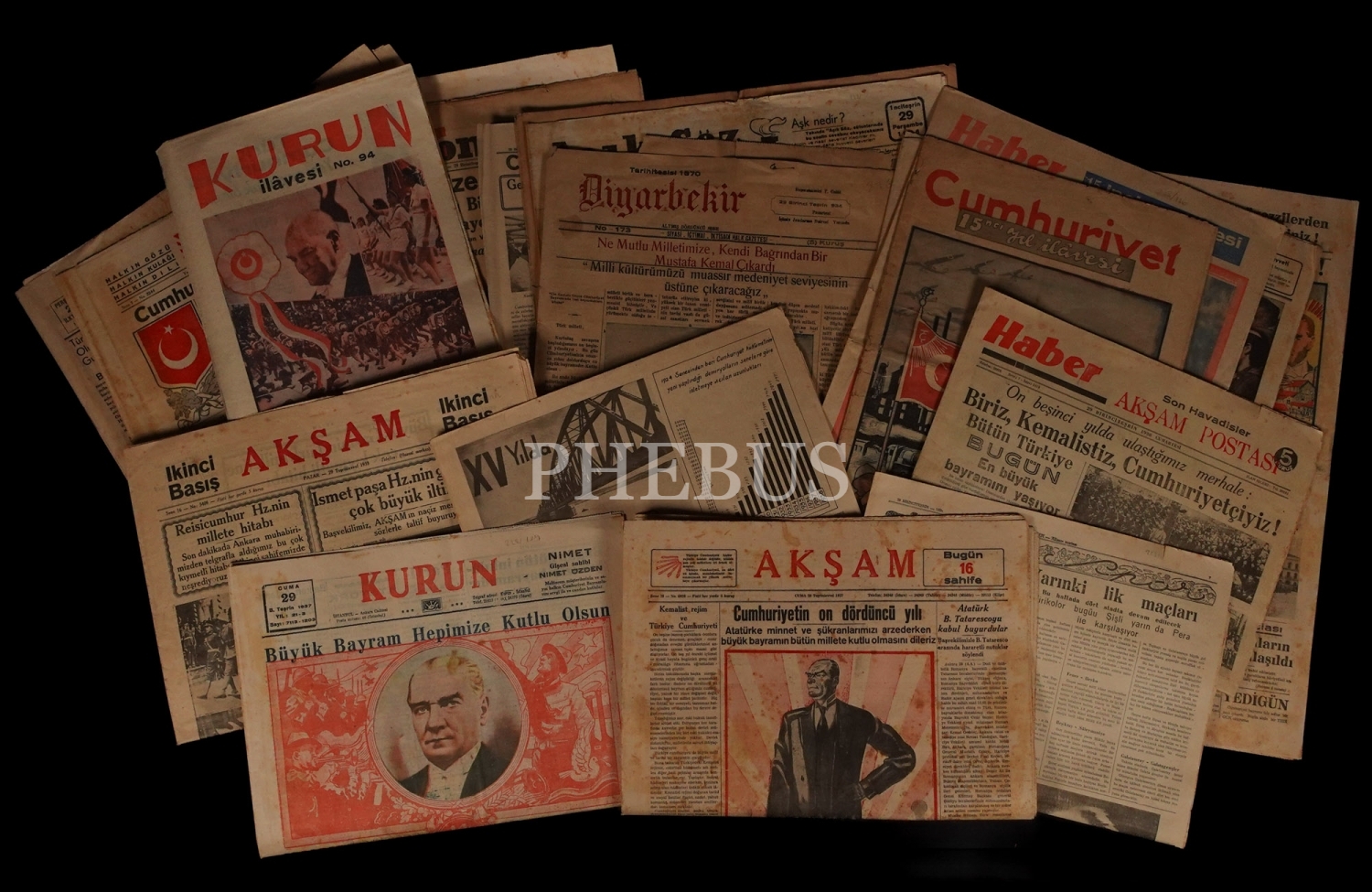 Tamamı Cumhuriyet'in yıldönümünü manşetine taşıyan, son derece nadir yerel gazetelerin de bulunduğu lot...