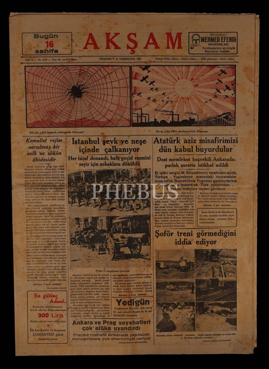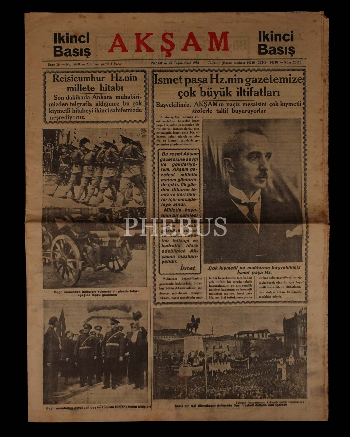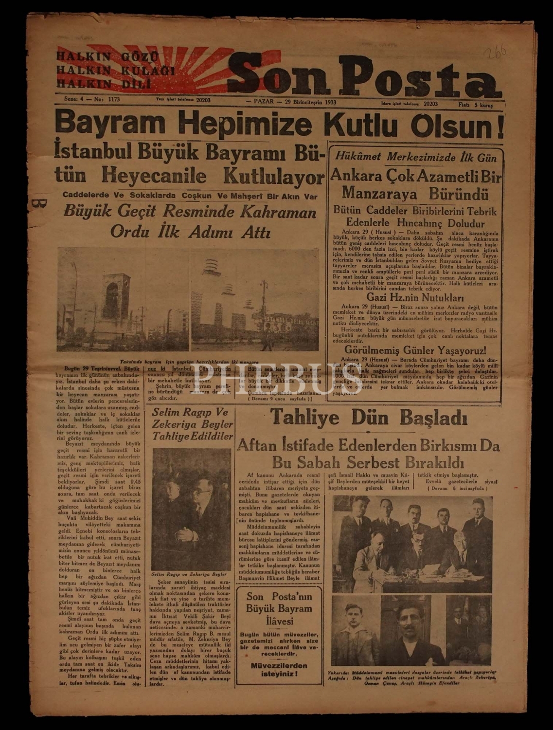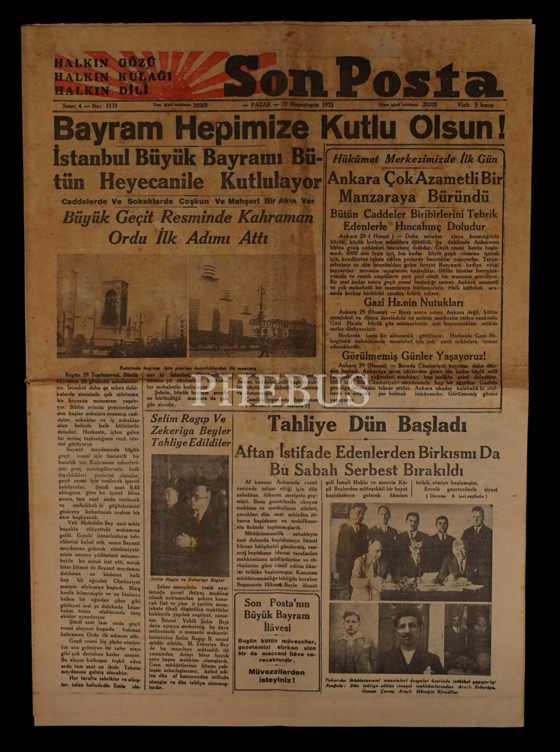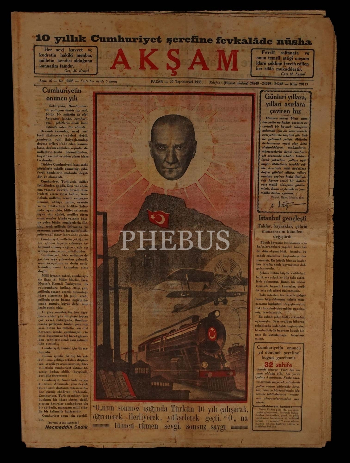 1933 senesinden 1938 senesine kadar Cumhuriyet´in yıldönümüne özel olarak yayımlanan, her birinin kapağında Mustafa Kemal Atatürk ve Cumhuriyet´e dair çeşitli görsellerin yer aldığı 12 adet gazete. Gazeteler: Haber (1936-1938), Cumhuriyet (1936-1937-1938), Akşam (1933-1936-1937-1937), Açık Söz (1936), Kurun (1937), Son Posta (1933-1936-1937), Diyarbekir (1934), Kastamonu (1936), Hakimiyet-i Milliye (1934)