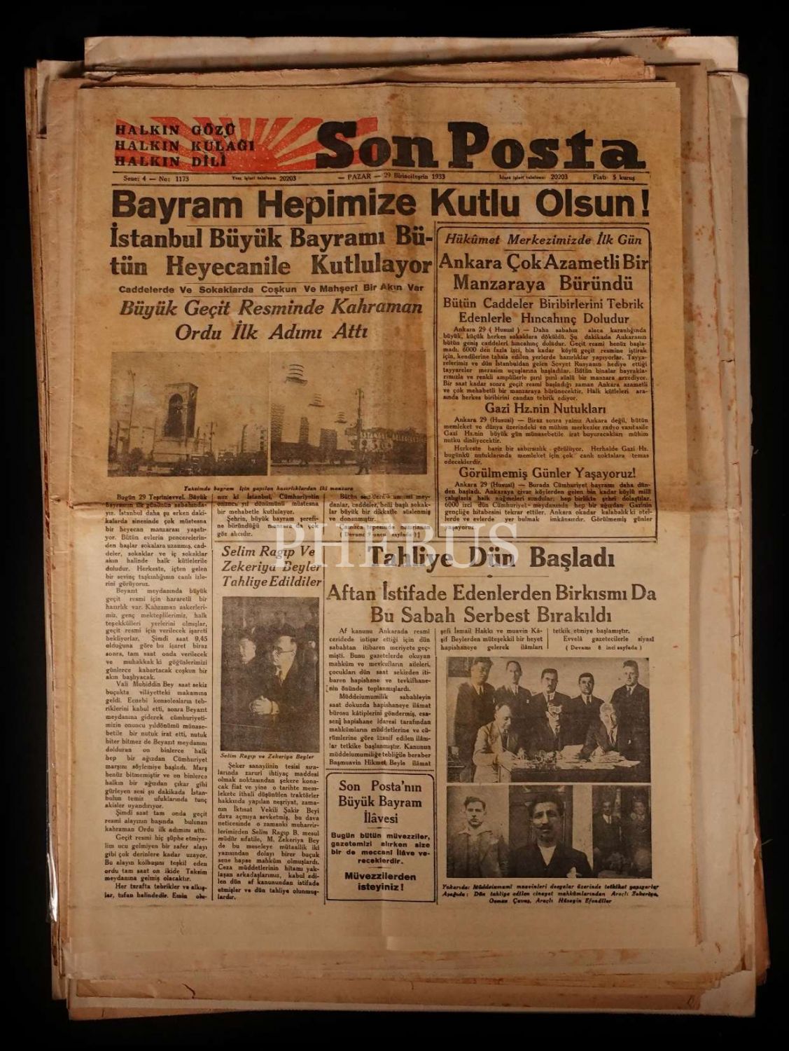 Mustafa Kemal Atatürk`ün sağlığında yayımlanmış 12 adet 29 Ekim gazetesi!.. "Yaşasın Cumhuriyet!"