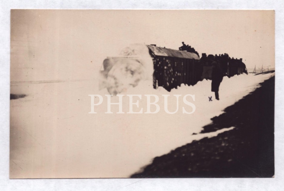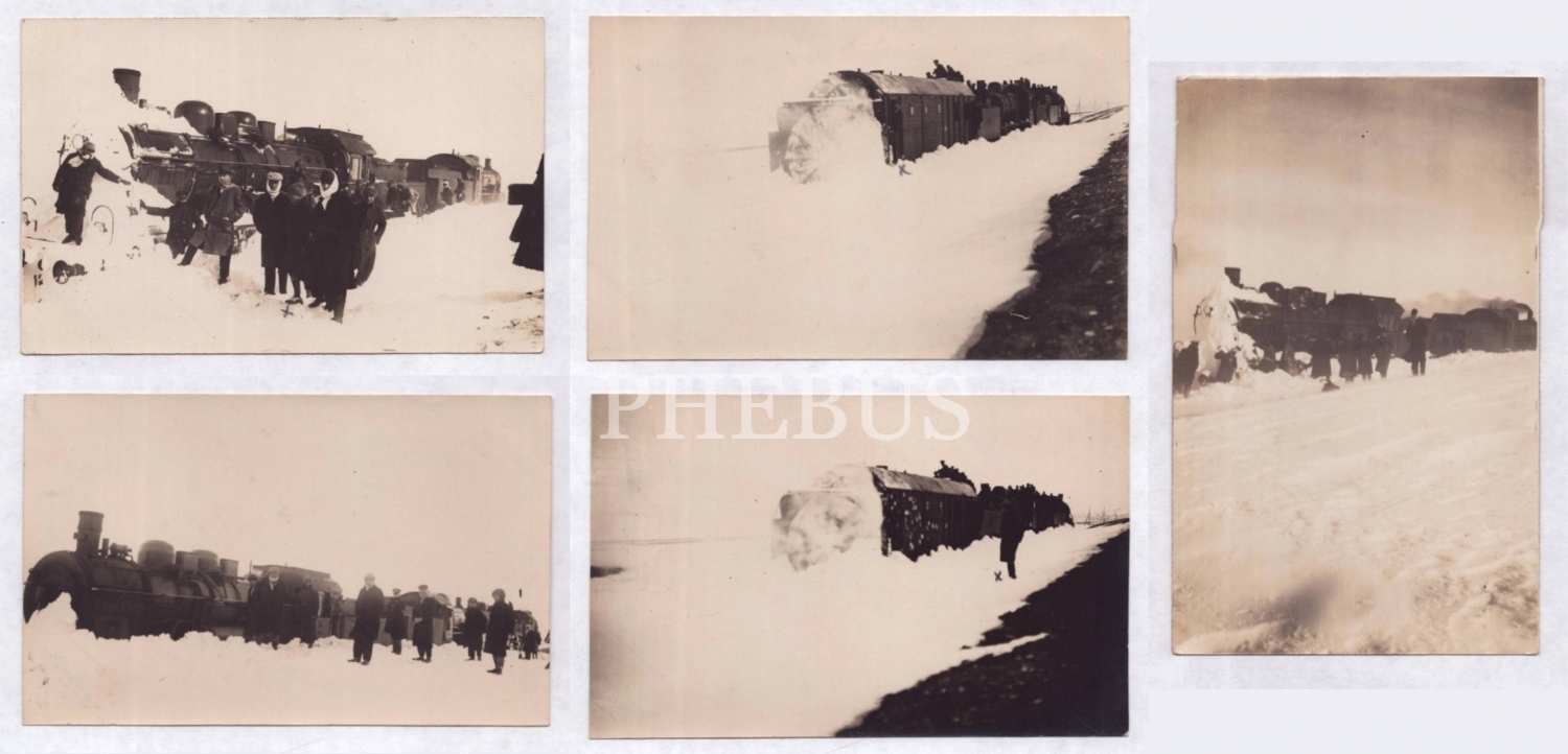 Kar nedeniyle trenleri duran yolcuların 10 adet hatıra fotoğrafı, 1929, 14x9 cm...