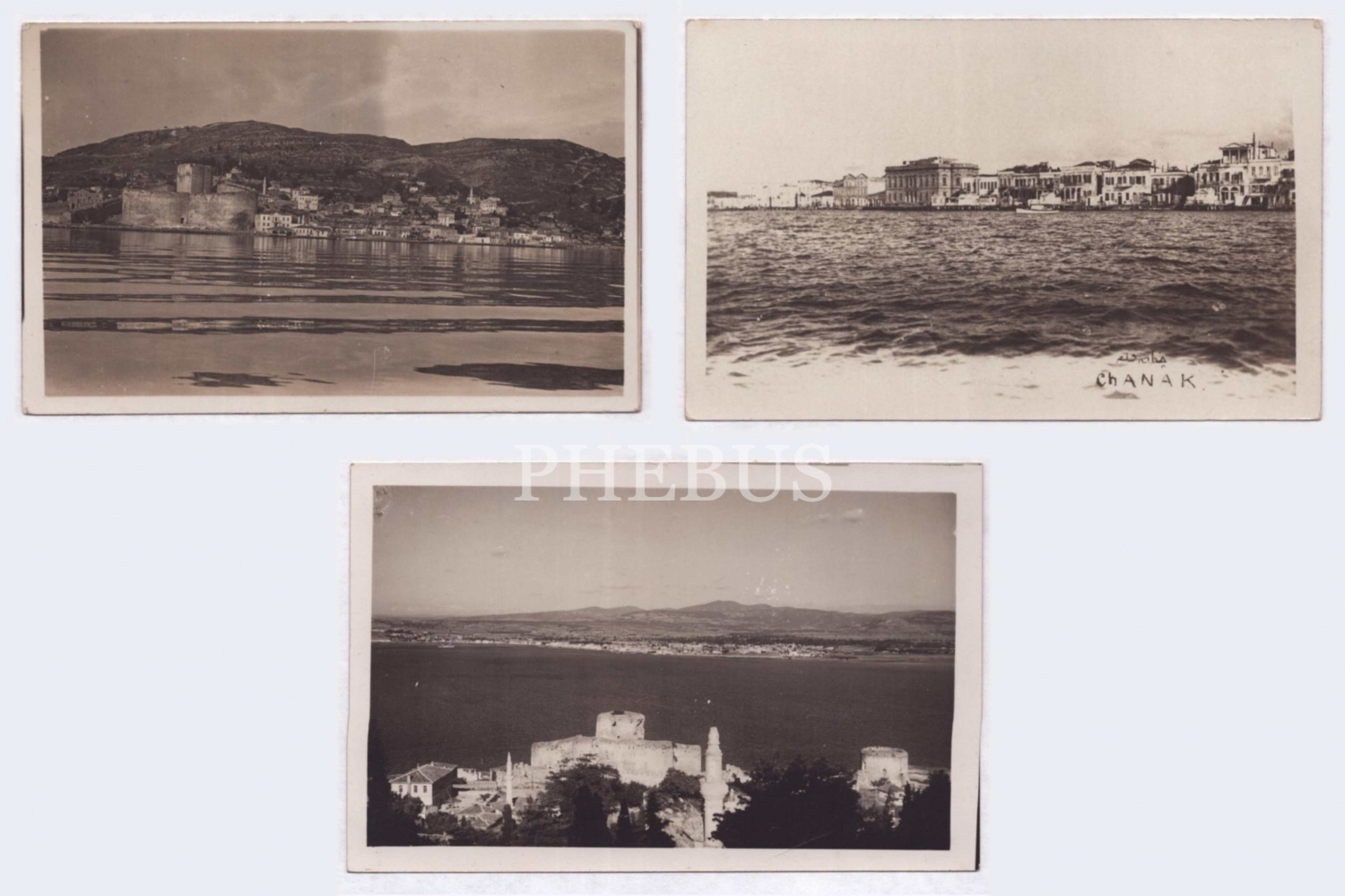 Kilitbahir Kalesi ve Çanakkale boğazından manzaralar içeren 3 adet fotoğraf, 14x9 cm...