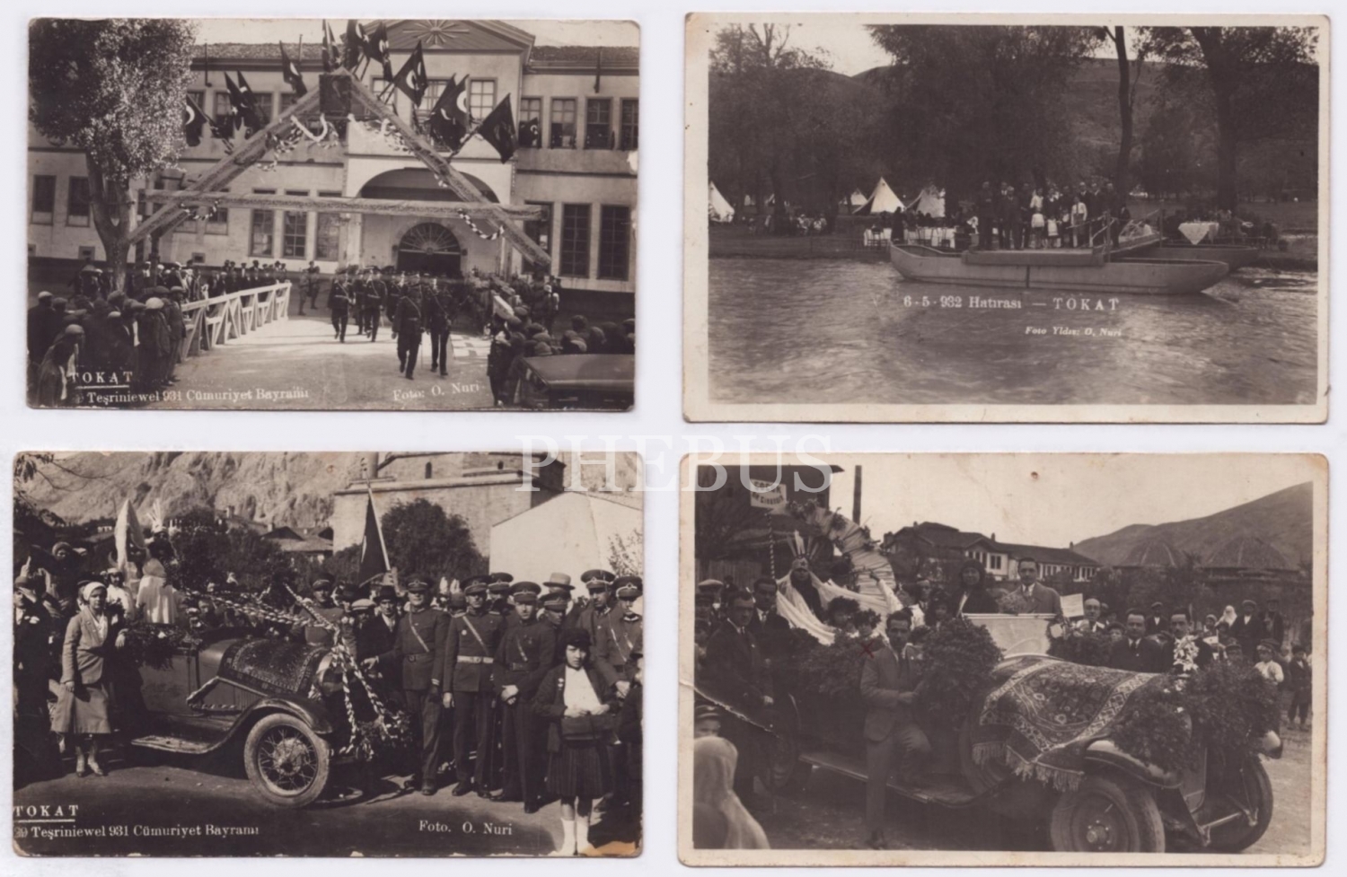 Tokat´ta 29 Ekim 1931 senesinde Cumhuriyet Bayramı kutlamalarında alınan 4 adet fotoğraf, Foto: O. Nuri, 14x9 cm...