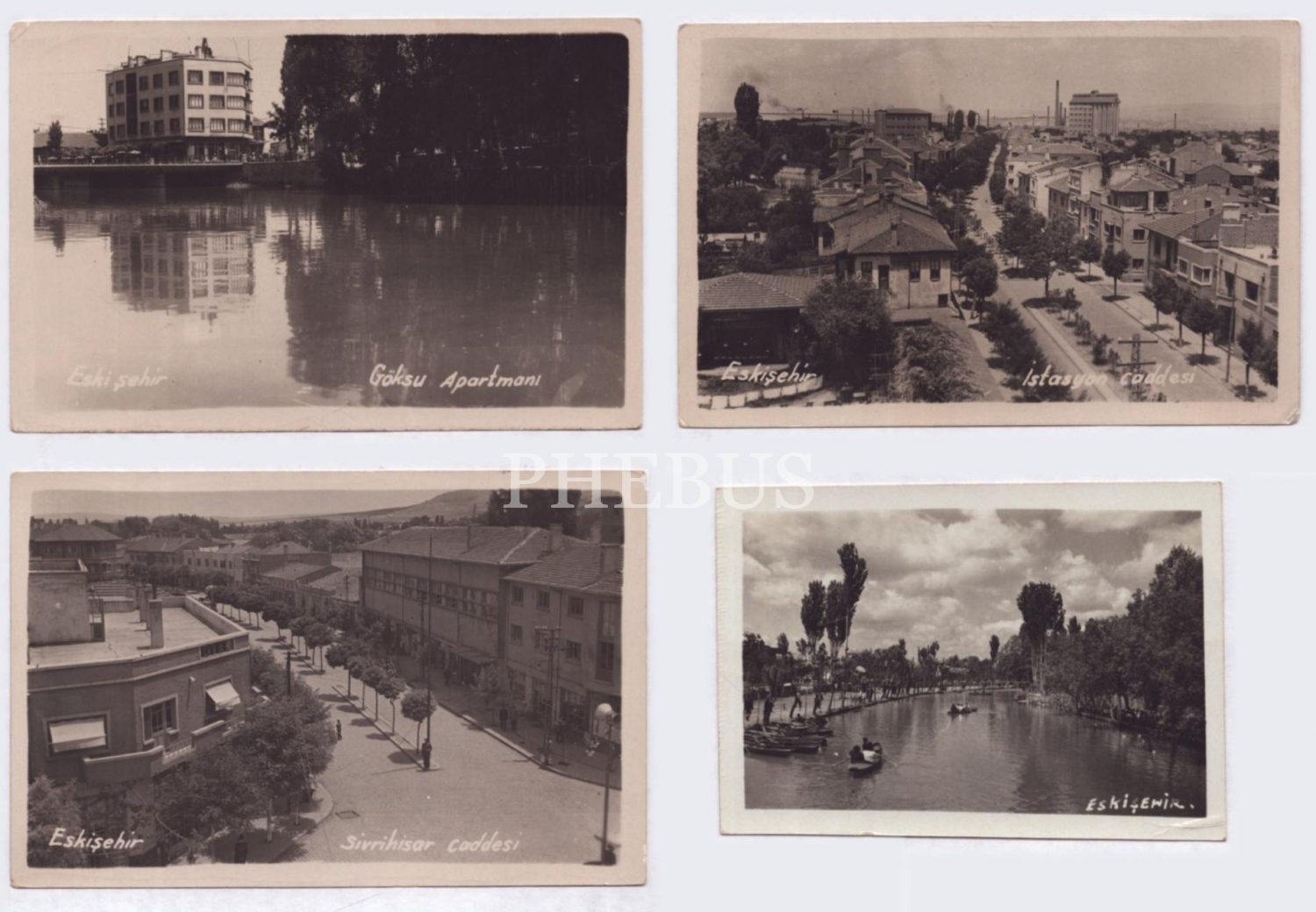 Erken Cumhuriyet döneminde Eskişehir´den İstasyon Caddesi, Sivrihisar Caddesi ve Göksu Apartmanı´nın göründüğü 4 adet fotoğraf, 14x9 cm, 9x6 cm...