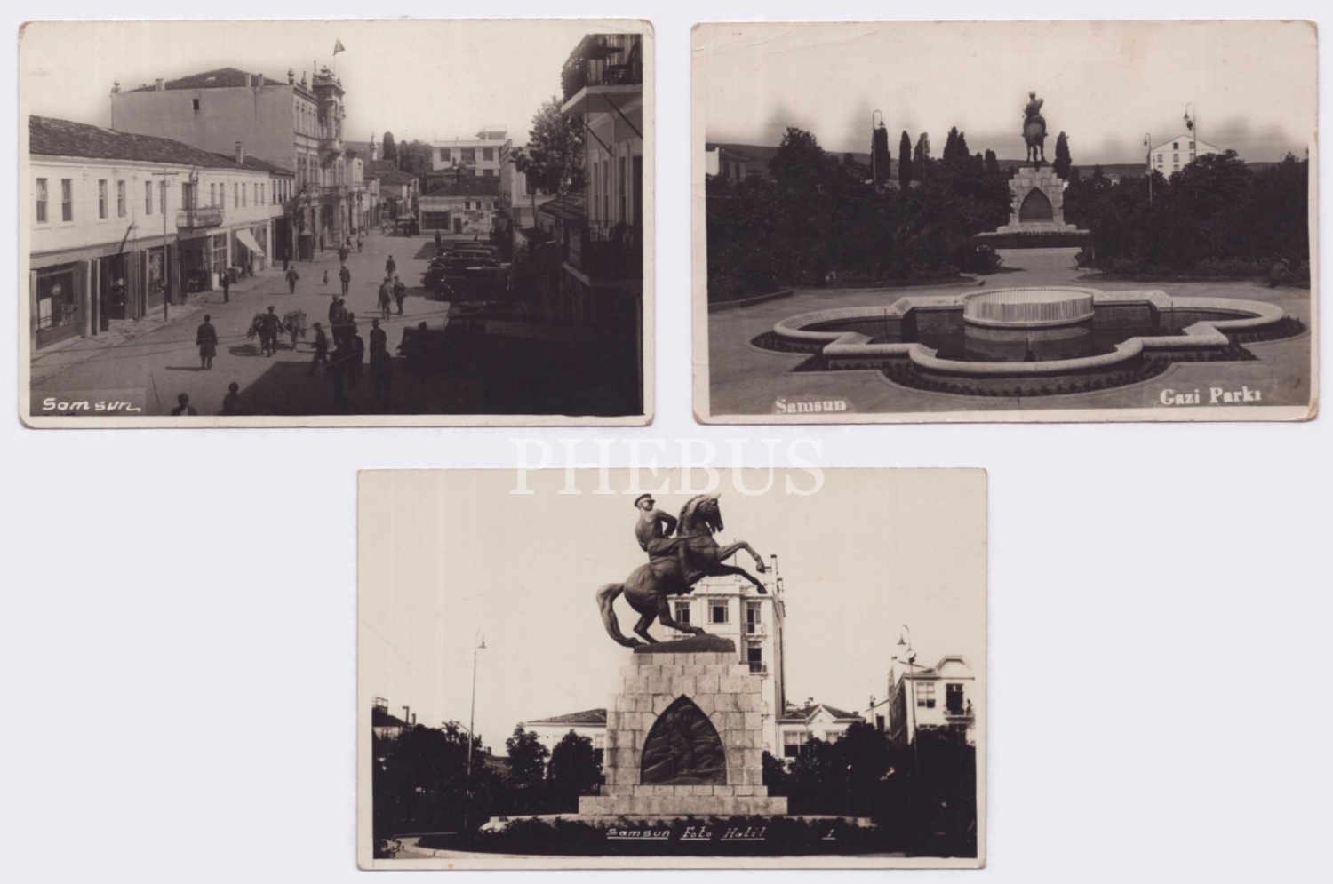 Samsun Atatürk Anıtı´nın bulunduğu Gazi Parkın´dan ve Samsun´dan bir cadde manzarasının göründüğü 3 adet fotoğraf, 14x9 cm...