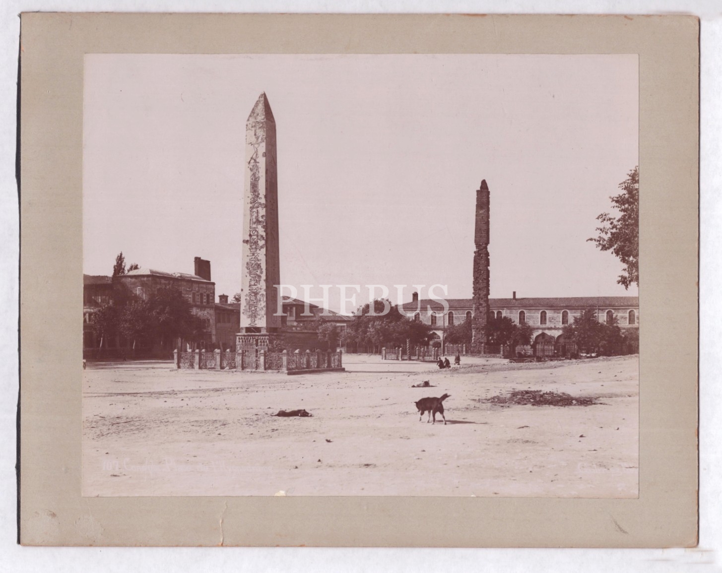 Sultanahmet Meydanı´ndan Dikilitaş ve Örme Dikilitaş´ın göründüğü "Gülmez Freres" fotoğrafhanesi damgalı fotoğraf, 31x24 cm...
