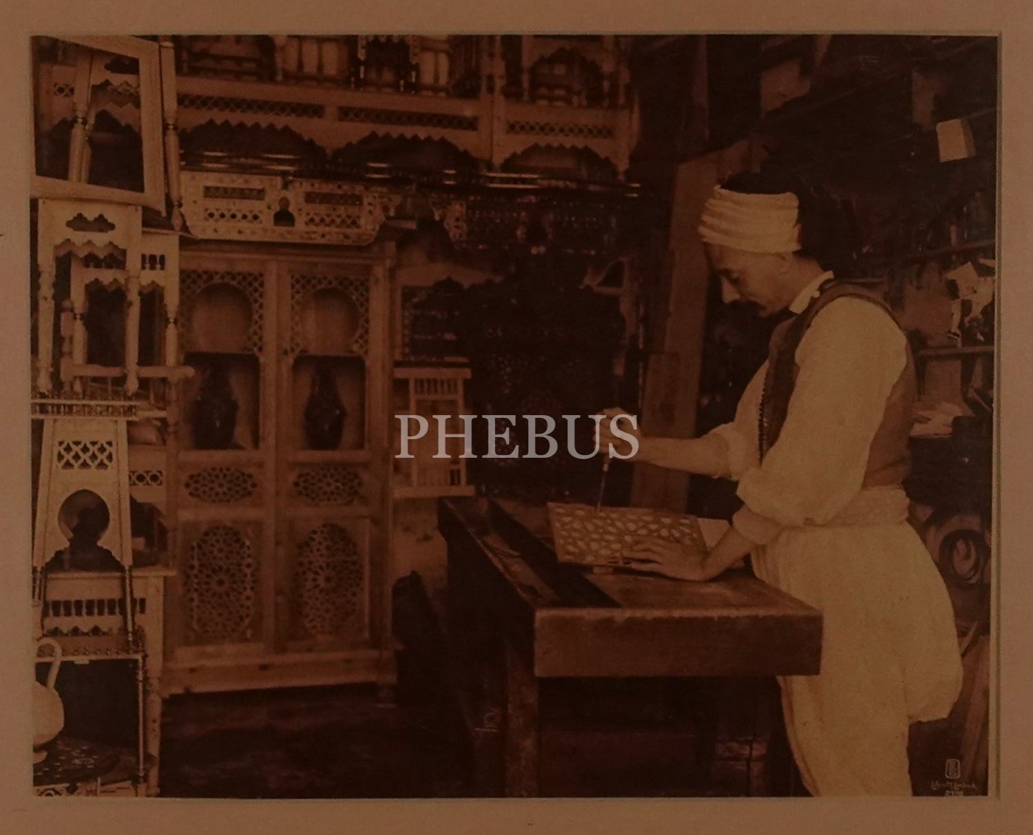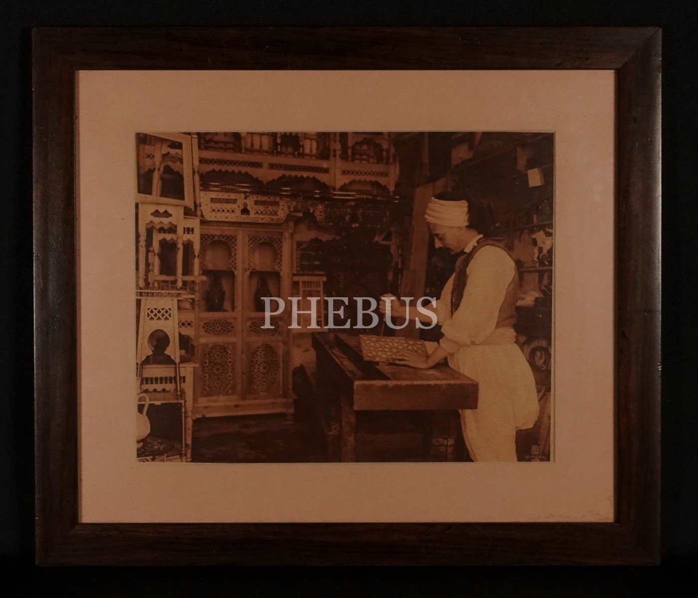 Atölyesinde çalışan bir ahşap oyma ustasının enstantane fotoğrafı, "Lehnert & Landrock" damgalı ,çerçevesiyle beraber 43x37 cm...