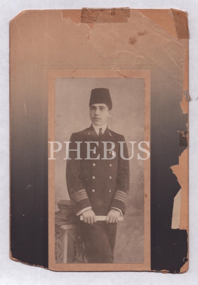 Osmanlı döneminden madalyalı bahriyeli subayın stüdyo hatıra fotoğrafı, 14x20 cm...