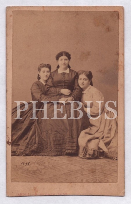 Şık giyimli hanımların stüdyo hatıra fotoğrafı, Abdullah Freres Fotoğrafhanesi, 7x10 cm...
