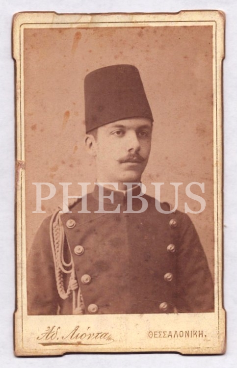 Osmanlı subayının stüdyo hatıra fotoğrafı, Lionda Freres Fotoğrafhanesi, 7x11 cm...