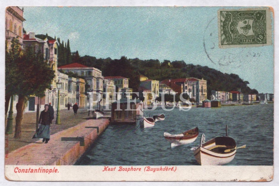 Büyükdere (Sarıyer) sahilinden bir manzara, "Haut Bosphore (Büyükdere), Constantinople", ed.: R. & K., L., 14x9 cm...