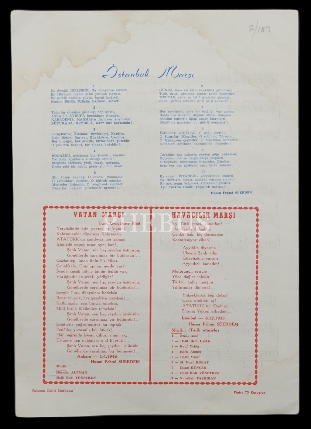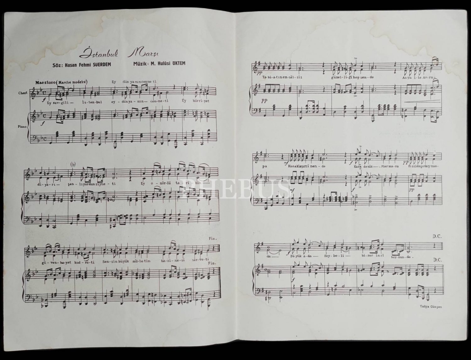 İSTANBUL MARŞI, Hasan Fehmi Suerdem-M. Hulûsi Öktem, 1955, 24x35 cm...