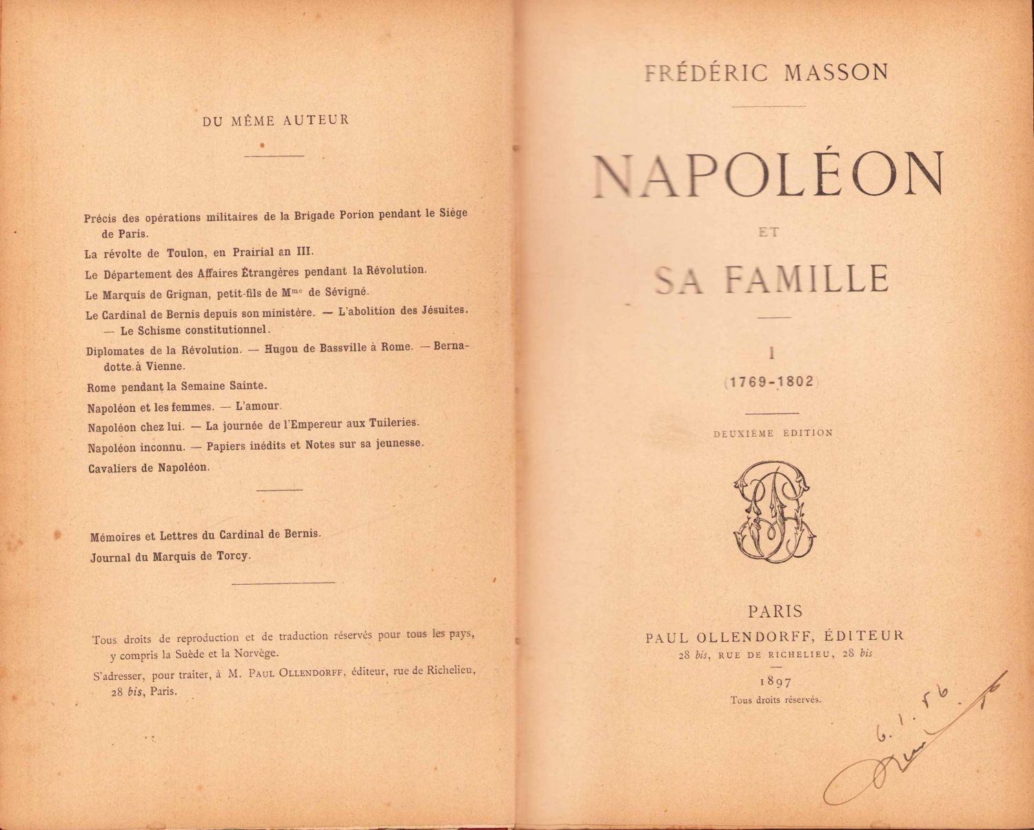 Napoléon et Sa Familia [3 cilt], Fréderic Masson, Paul Ollendorff Editeur, Paris, Fransızca, 1897, 22x14 cm.