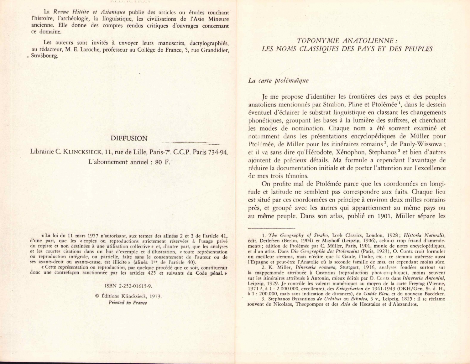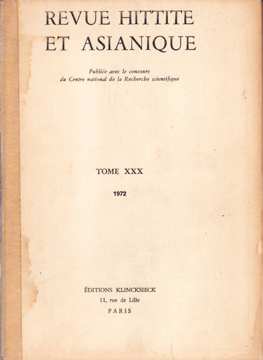 Revue Hittite Et Asianique, Publiee avec le concours du Cenre national de la Recherche scientifique, Tome XXX, Paris, 1972, Fransızca, 53 sayfa, 15x21 cm.