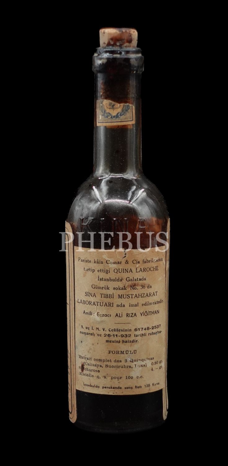 Quina Laroche (Kınalaroş) şişesi (yarısından biraz azı dolu), Sina Tıbbî Mustahzarat, 23x6 cm...