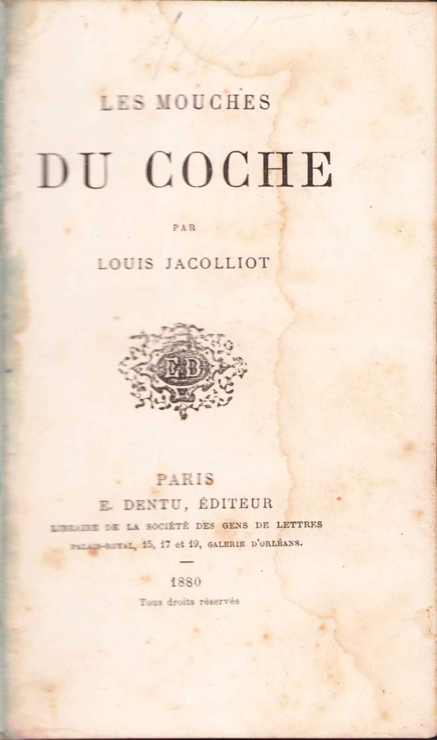 Les Mouches Du Coche, Louis Jacolliot, E. Dentu Editeur, Paris, 1880, 310 sayfa, 11x18 cm.