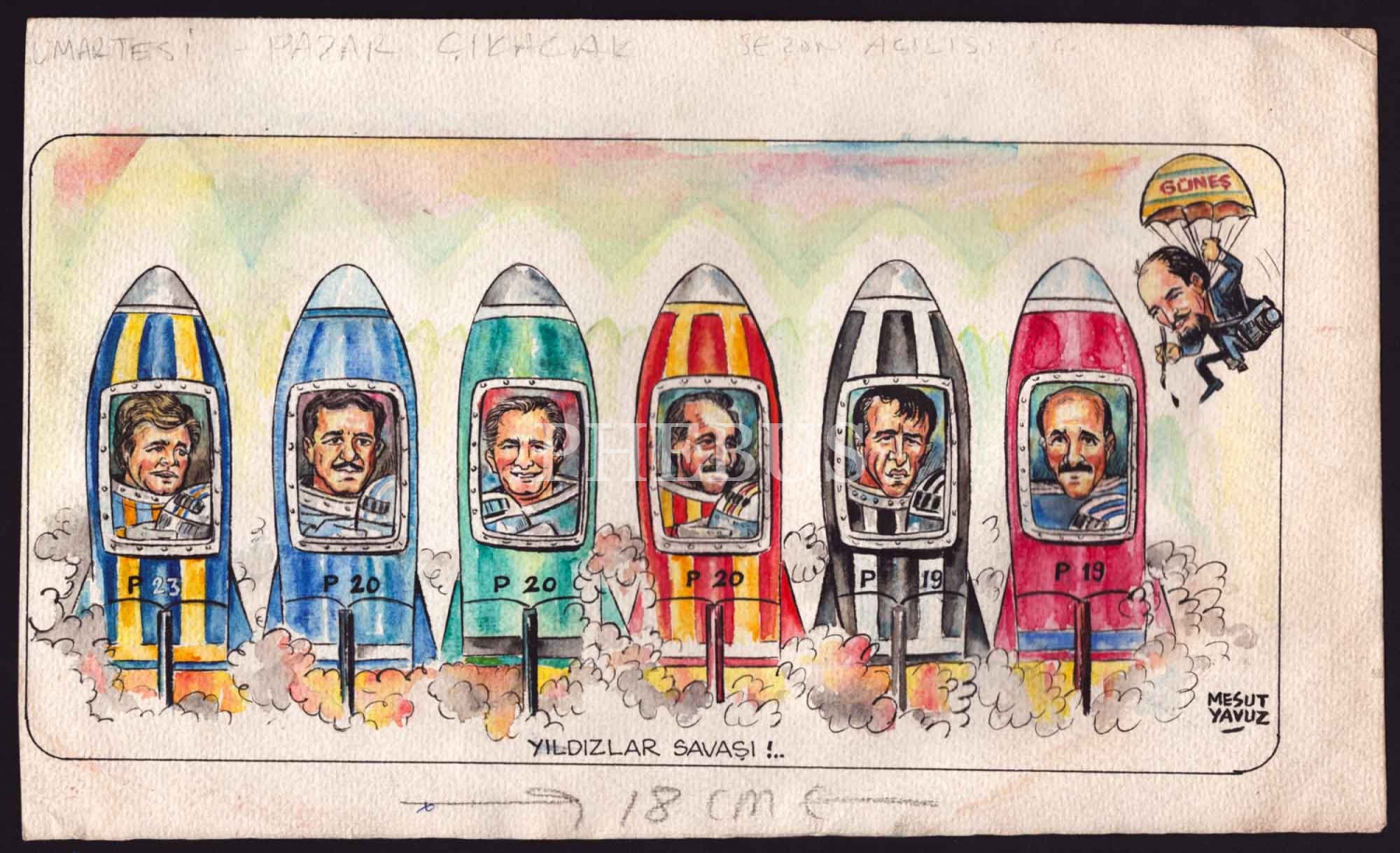 Mesut Yavuz ıslak imzalı, futbol konulu karilkatür, 36x22 cm...