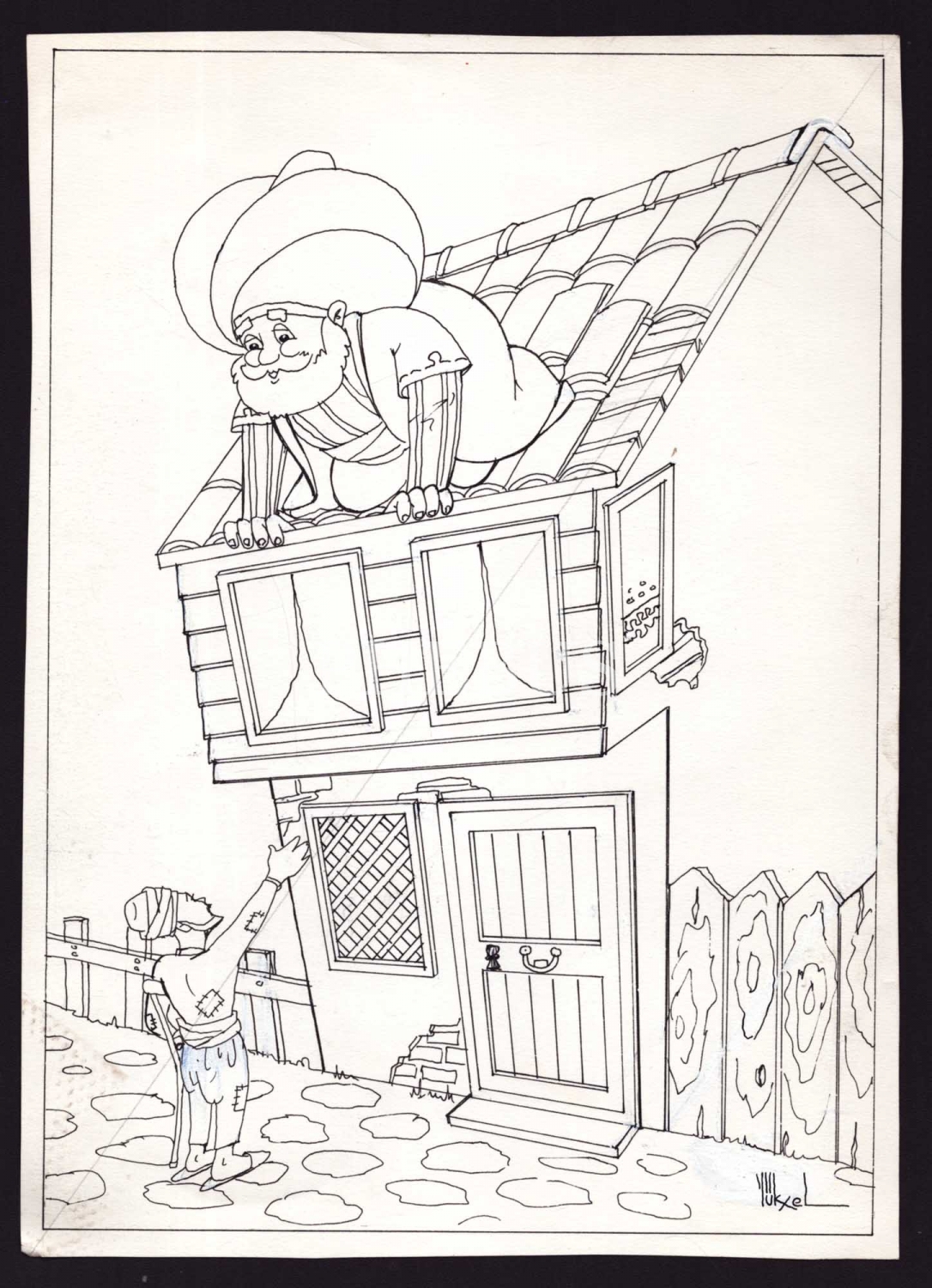 Yüksel (Ertan) ıslak imzalı çatıya çıkan Nasreddin Hoca çizimi, 22x31 cm...