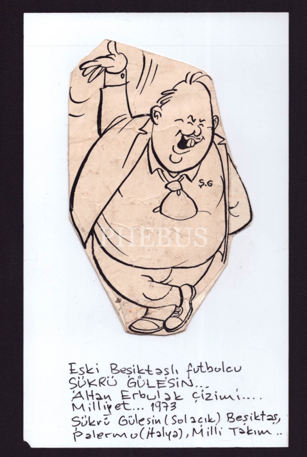 Altal Erbulak, Beşiktaşlı eski futbolcu Şükrü Gülesin konulu karikatür, 10x17 cm...