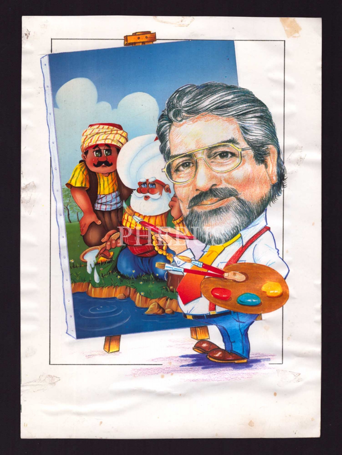 Yüksel Ertan ıslak imzalı, Nasrettin Hoca göle maya çalması ve Yüksel Ertan otoportresi konulu kolaj karikatür, 21x30 cm...