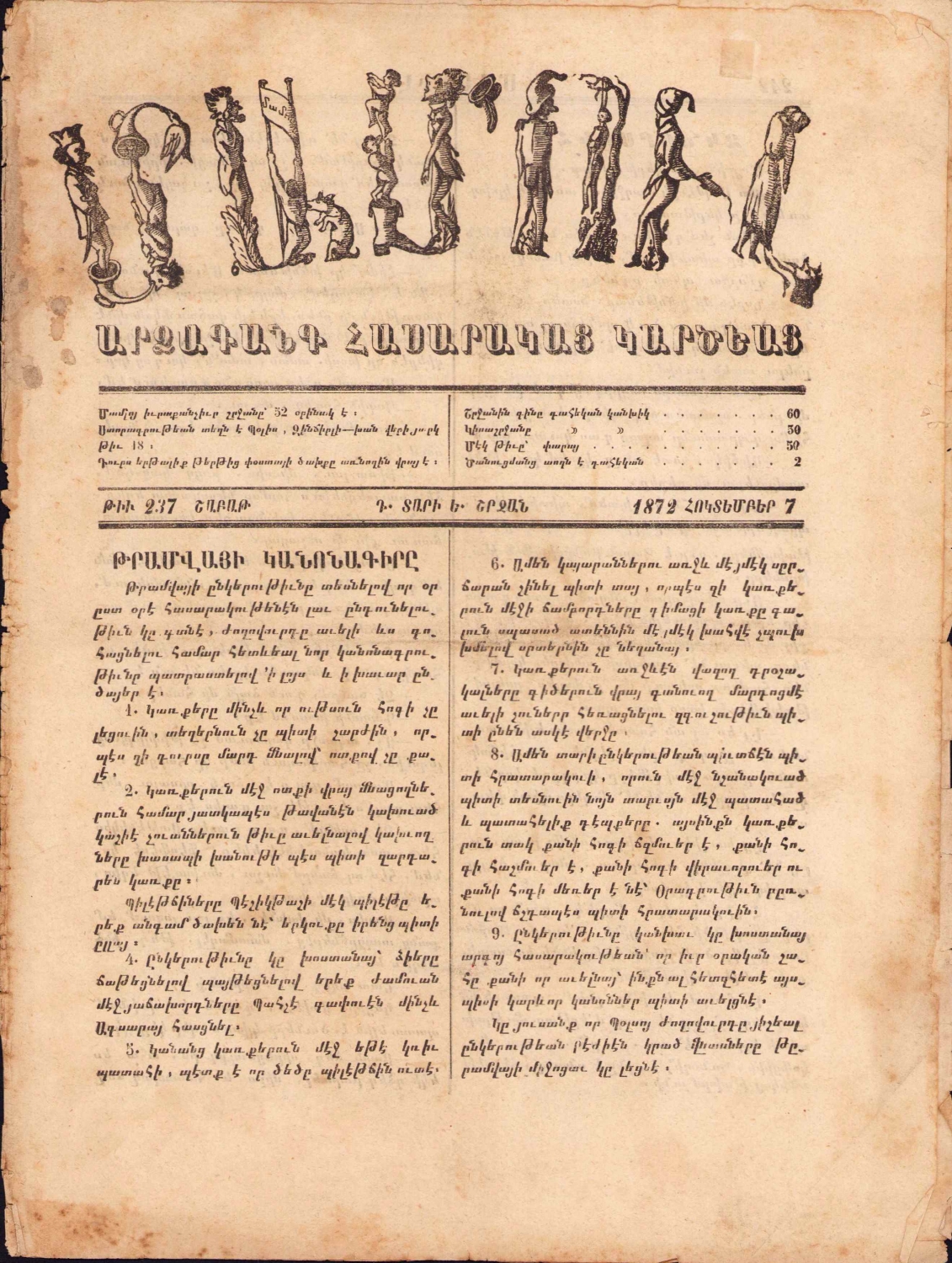 Ermenice dergi, 1872 tarihli, 8 sayfa, 22x30 cm.