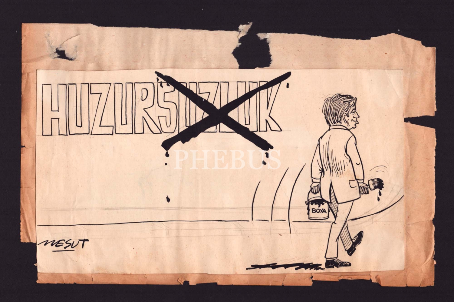 Mesut Yavuz ıslak imzalı politik duvar konulu karikatür, 29x18 cm...