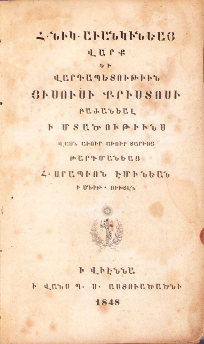 Ermenice kitap, 1848 tarihli, 655 sayfa, 8x13 cm.
