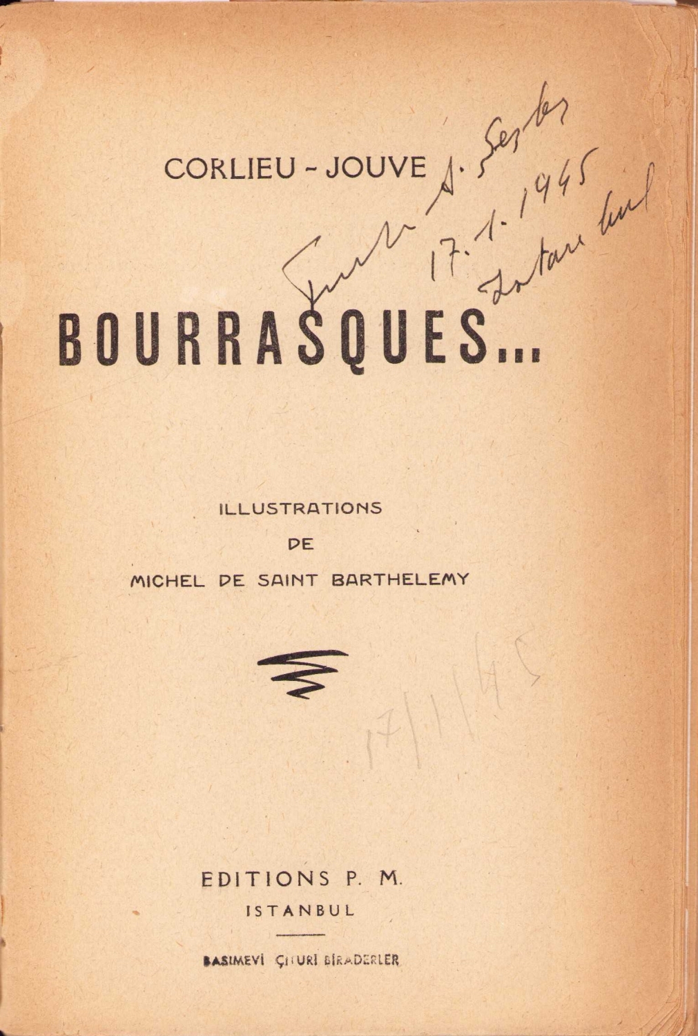 Bourrasques, Corlieu Jouve, Halide Edip önsözüyle, Editions P. M, İstanbul, Çituri Biraderler Basımevi, imzalı, 1942, Fransızca, 248 sayfa, 13x19,5 cm.