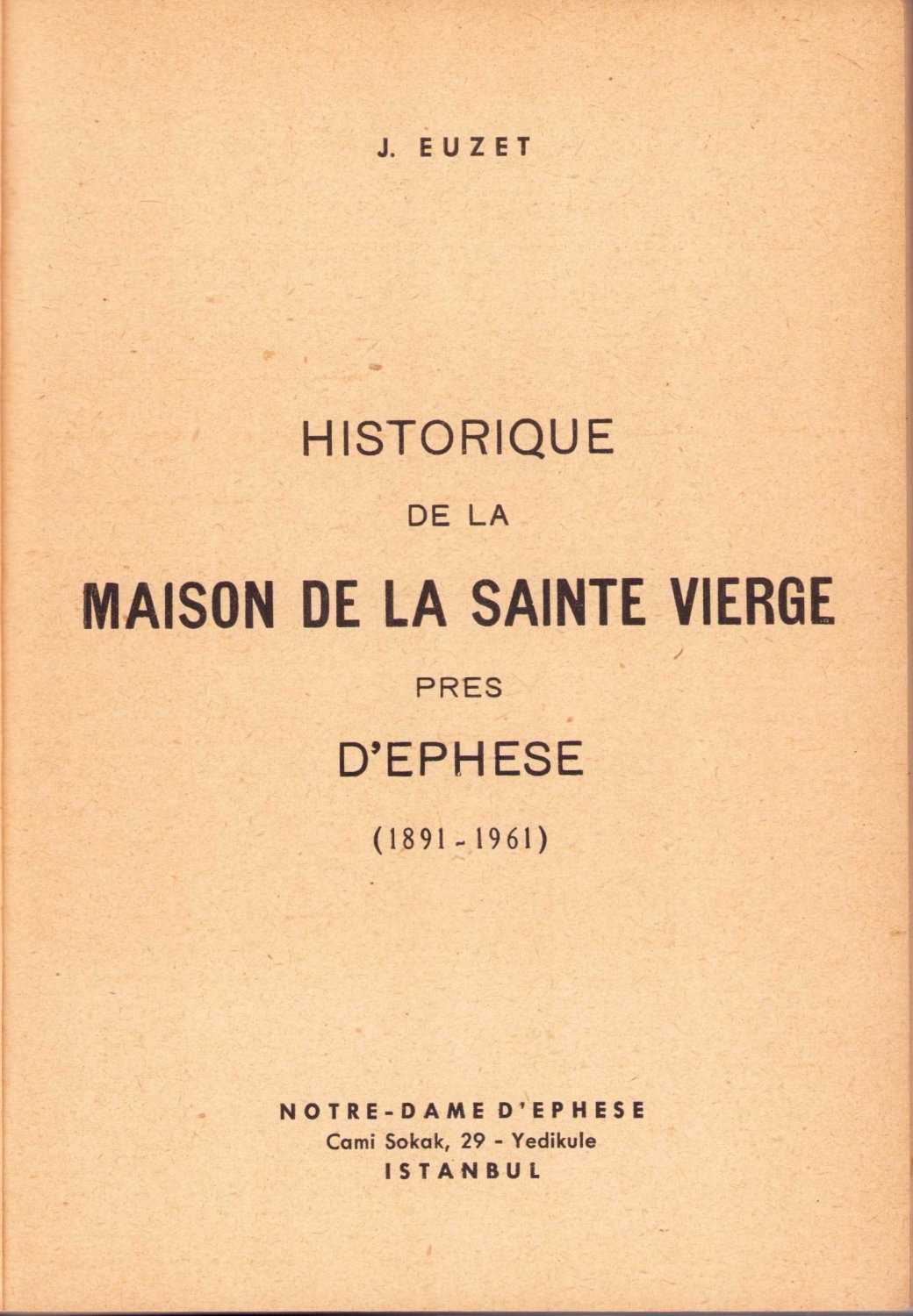 Histoirique de La Maison de La Sainte Vierge D'Ephese (1891-1961) [Efes'deki Meryem Ana Evi'nin Tarihi], Joseph Euzet, Notre-Dame D'Ephese, İstanbul, Fransızca, 166 sayfa, 14x19,5 cm.