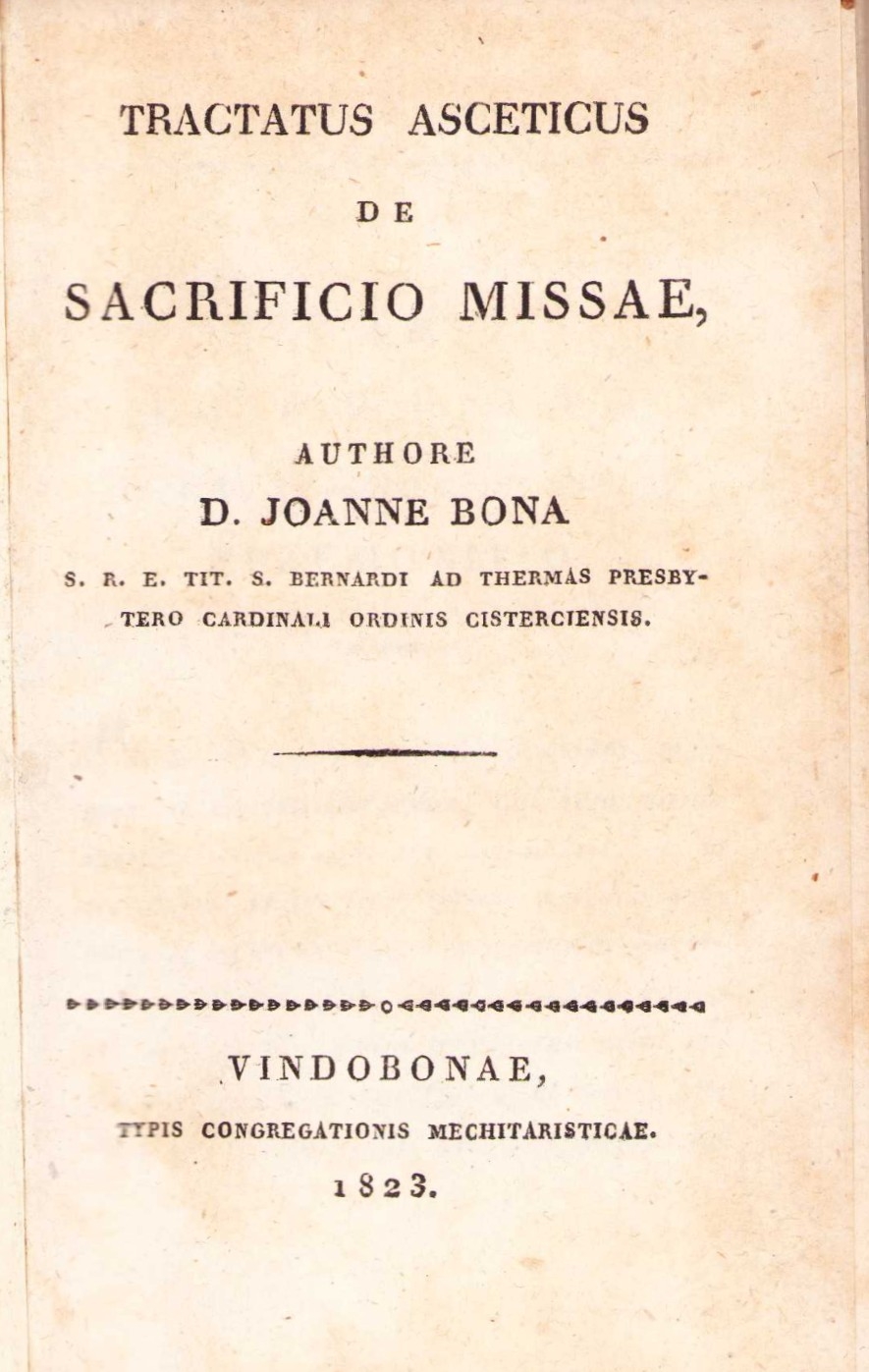 Tractacus Asceticus de Sacrificio Missae, D. Joanne Bona, Vindobonae, 1823, Latince, 186 sayfa, 9,5x15,5 cm.