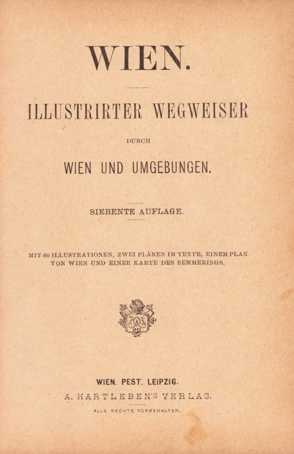 Wien İllustrirter Wegweiser durch Wien und Umbebungen, Wien, A. Hartleben's Verlag, 133 sayfa, Almanca, 11,5x17 cm.