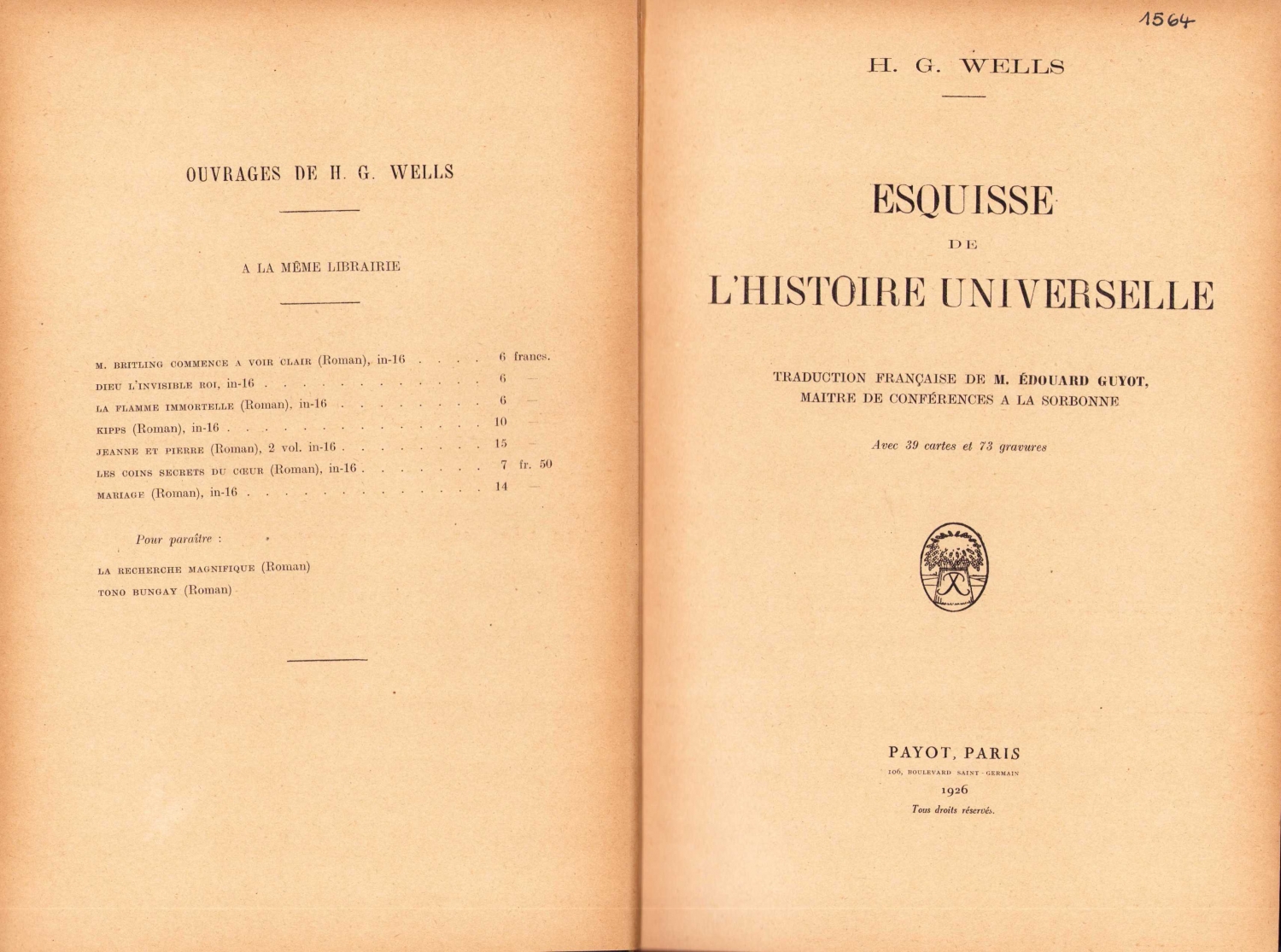 Esquisse de L'Histoire Universelle, H. G. Wells, Payot, Paris, 1926, Fransızca, 580 sayfa, 18,5x27,5 cm.