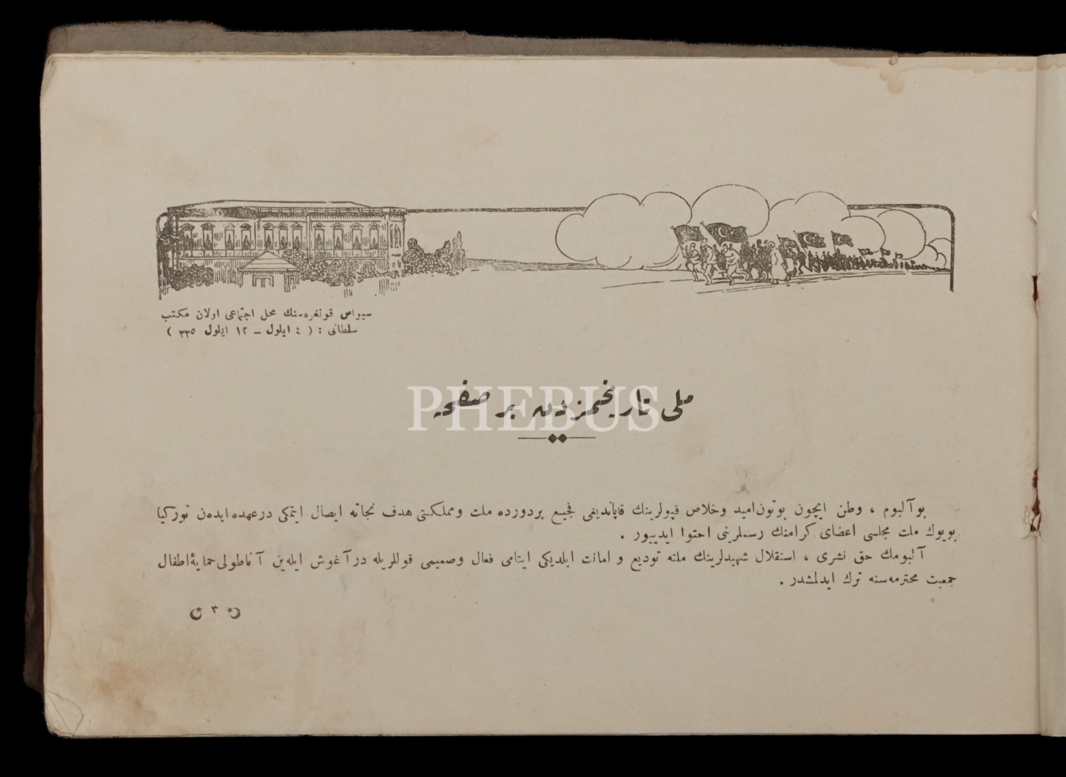 Albümün ilk sayfalarında Milli Mücadele´nin başlagıcından Millet Meclisi´nin kuruluşuna kadar bir tarihçe yazılmıştır. İçerisinde Mustafa Kemal Atatürk, Ali Fuad Paşa, Kazım Karabekir, İsmet İnönü başta olmak üzere meclise kayıtlı 395 üyenin portre fotoğrafları ve kısa biyografileri yer almaktadır.