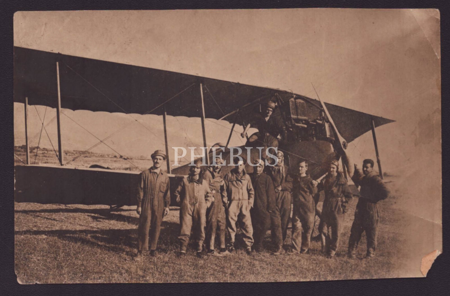 Erken Cumhuriyet döneminden tayyare önünde poz veren pilotlar ve teknik ekibin hatıra fotoğrafı, 14x9 cm...