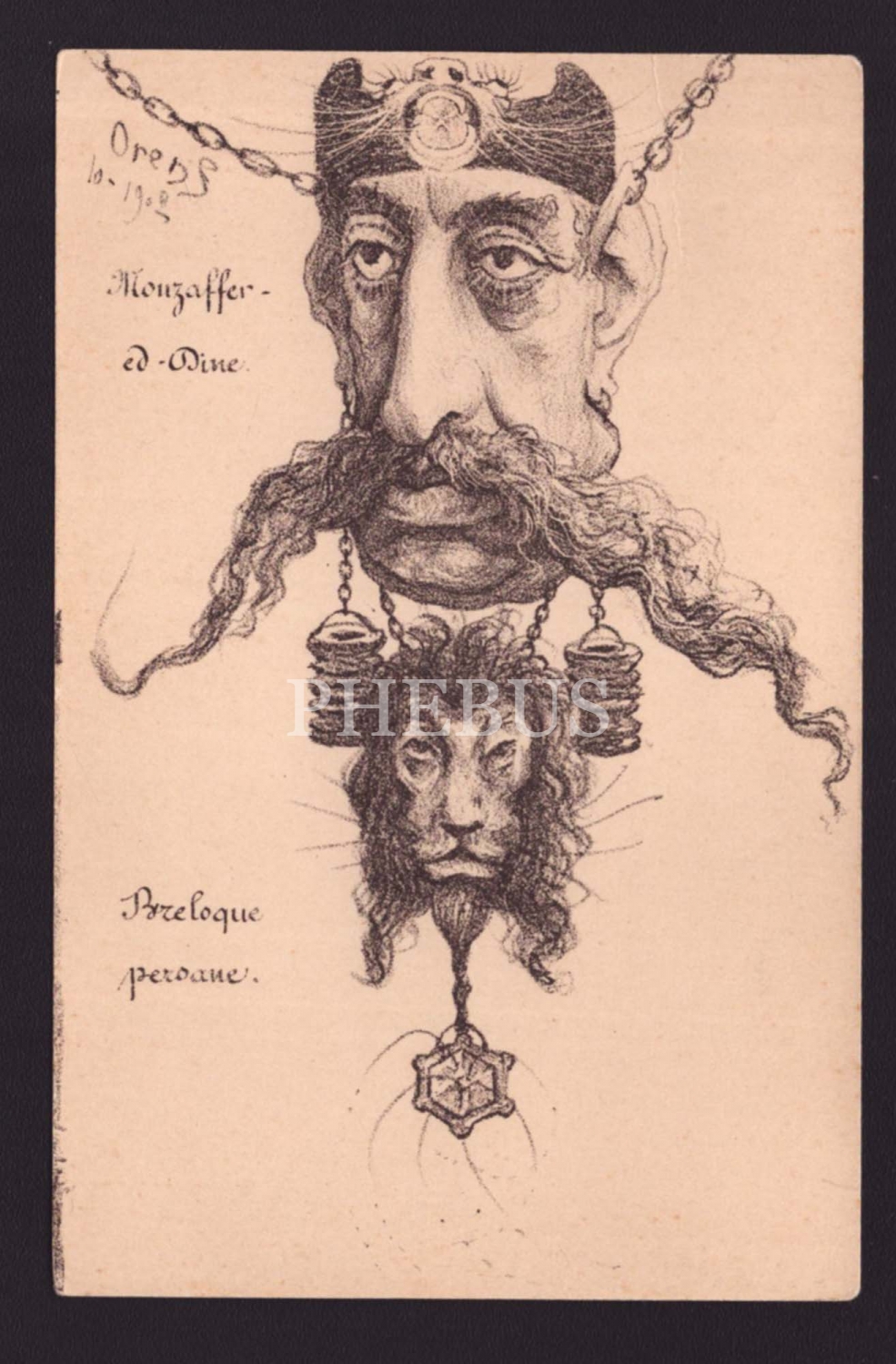 İran Şahı Muzaffereddin görselli propaganda kartpostalı, 9x14 cm...