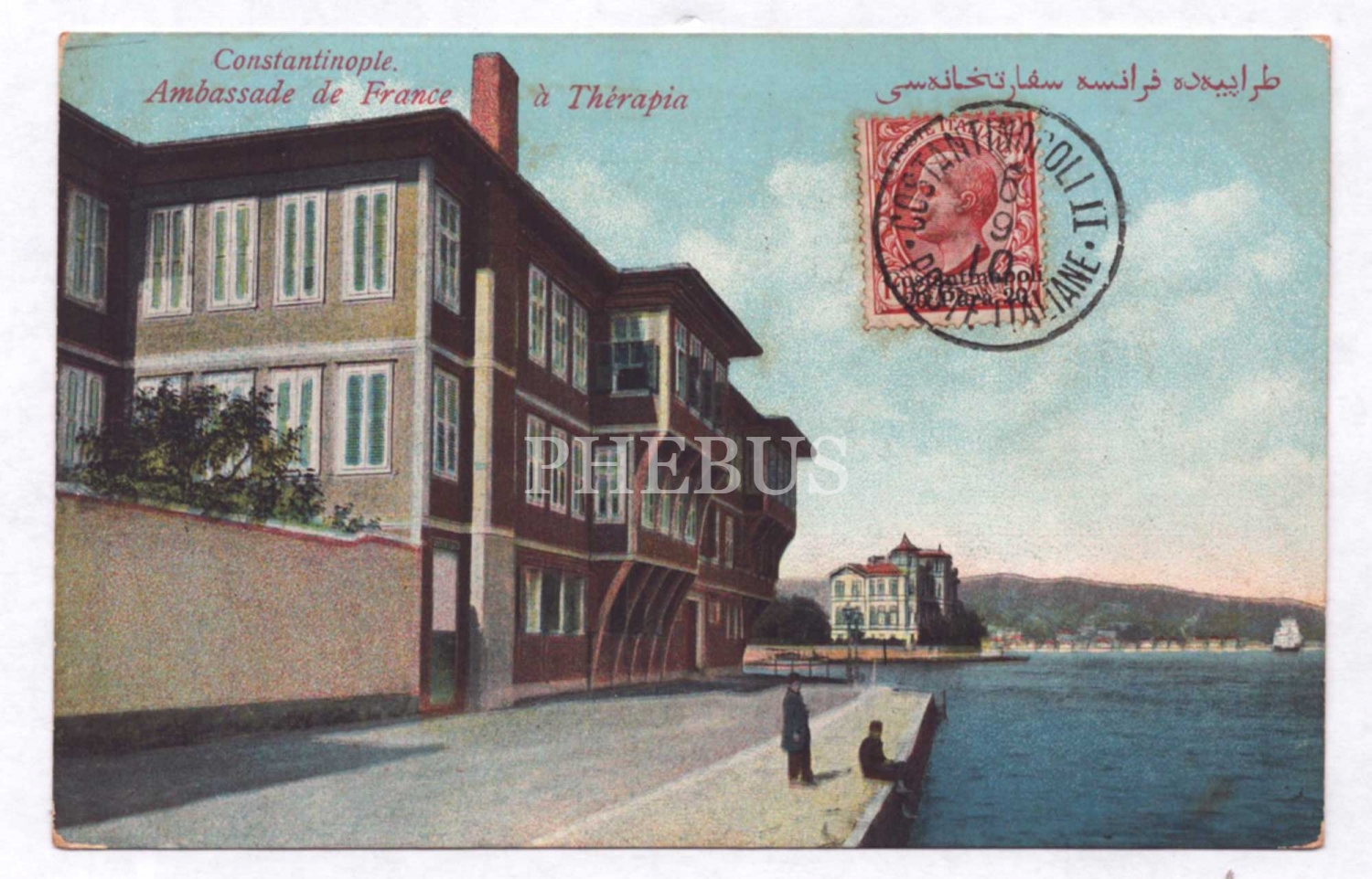 Tarabya Fransız Elçiliği, "L´Ambassade de France, Therapia", Osmanlıca "Tarabya´da Fransız Sefarethanesi" yazılı, 14x9 cm...