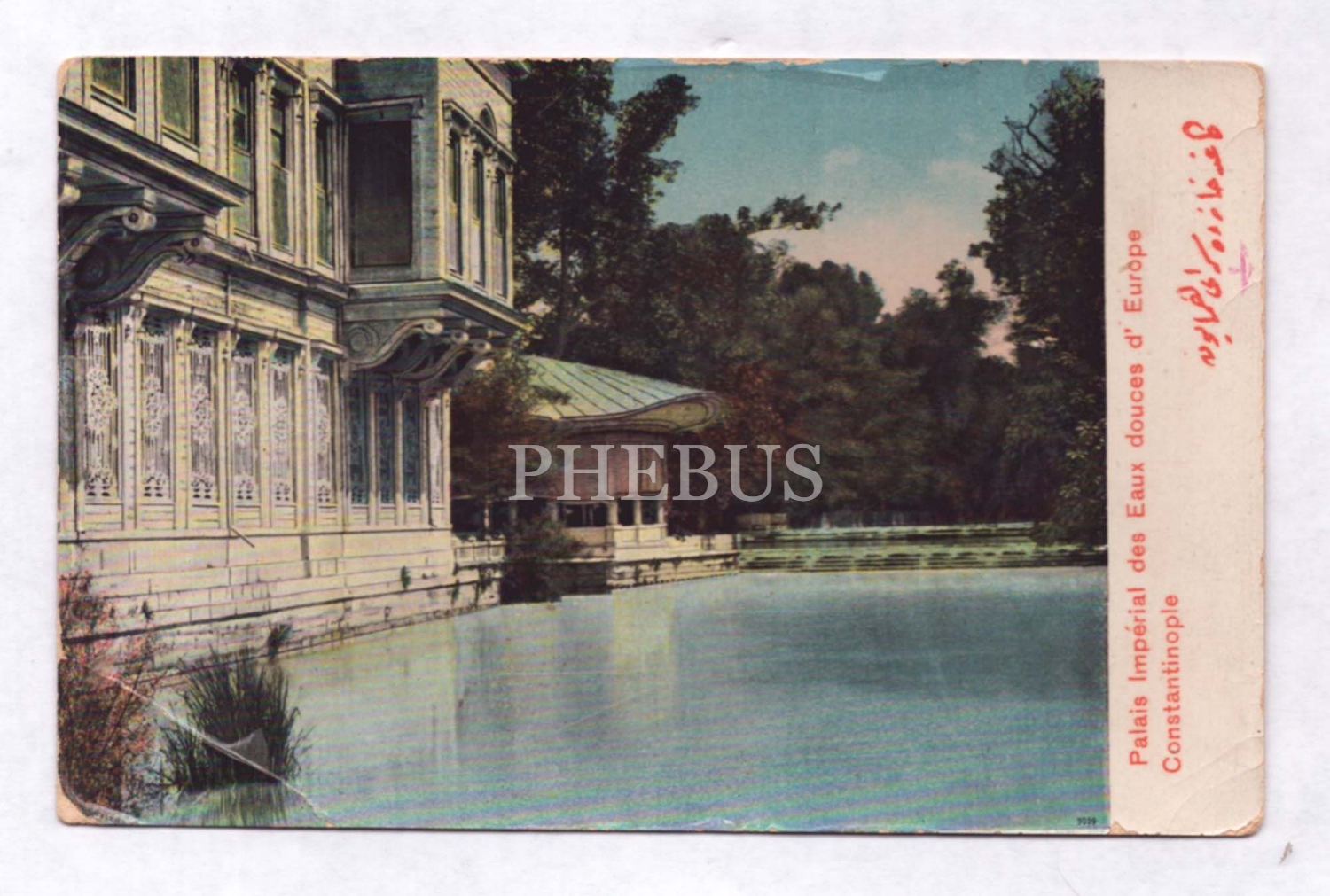 Sadabat Sarayı, "Palais Imperial des Eaux douces d´Europe", Osmanlıca "Kağıthane´de Saray-ı Hümayun" yazılı, ed.: F. A. C., 14x9 cm...