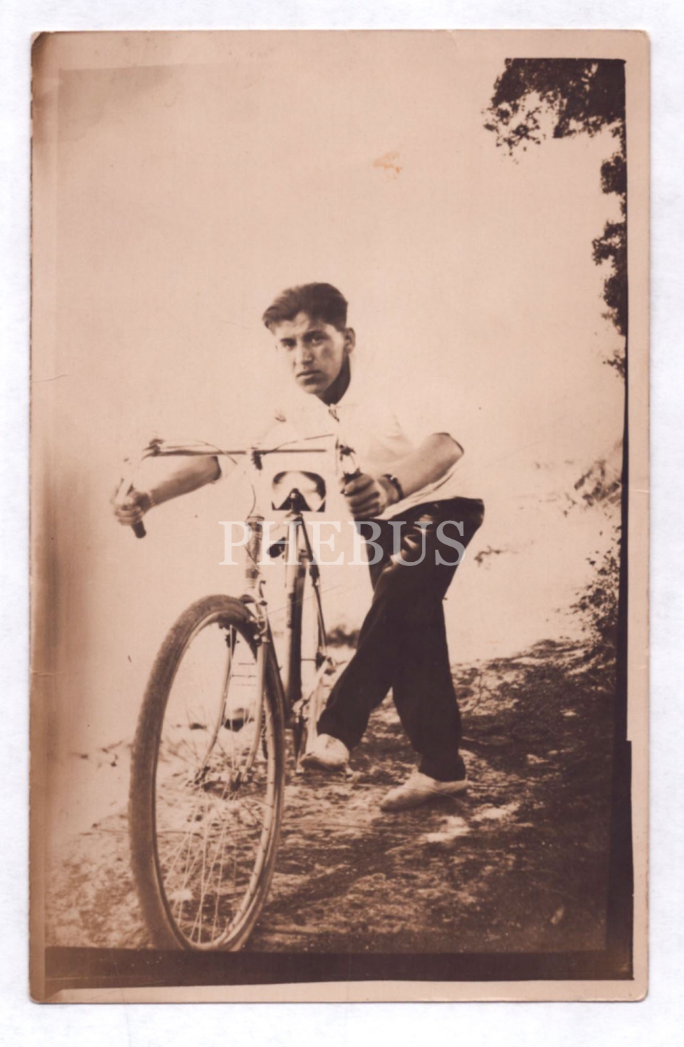 Bisikletiyle poz veren gencin hatıra fotoğrafı, 14x9 cm...