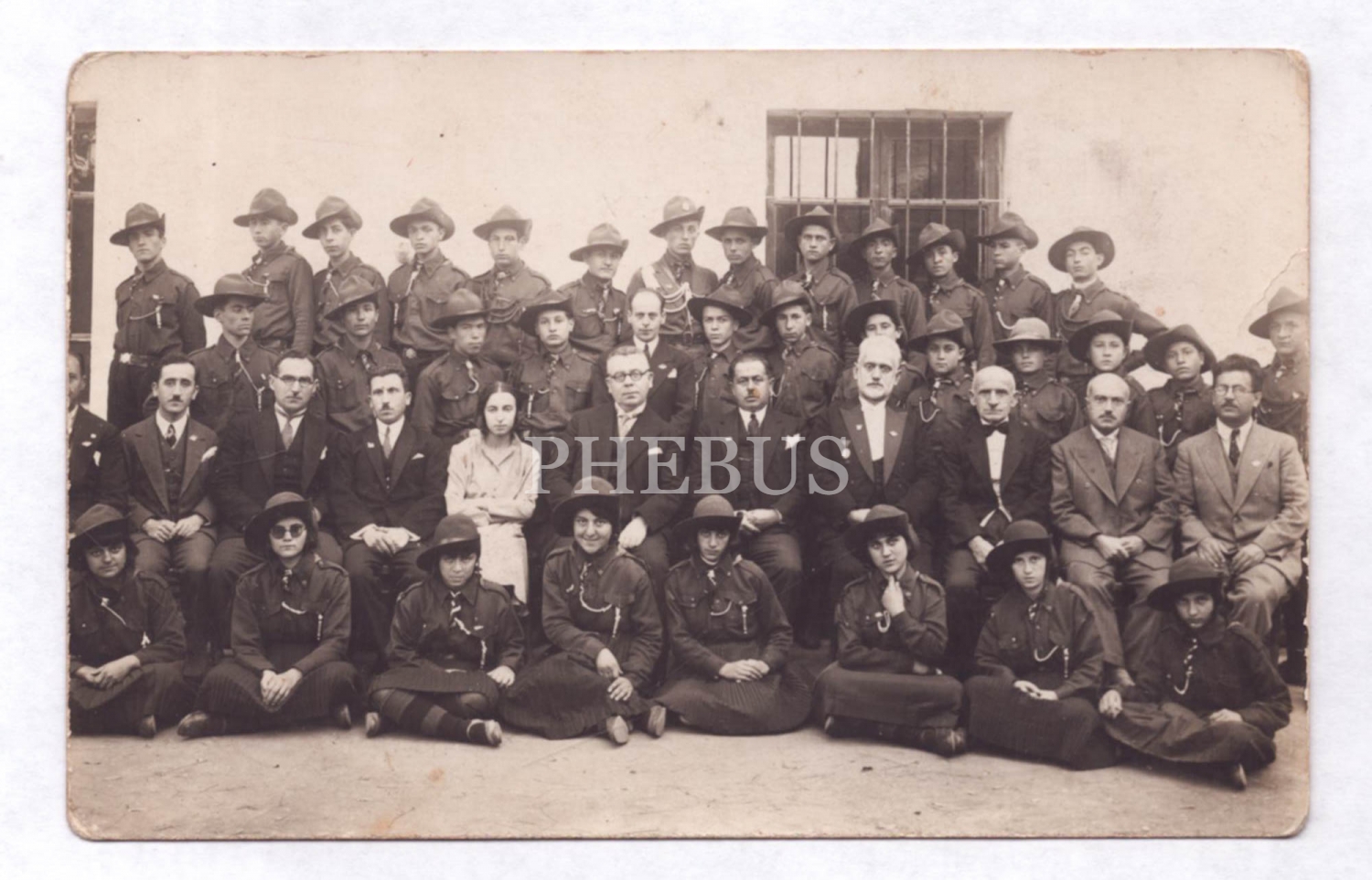 İzci oymağı ve öğretmenlerinin hatıra fotoğrafı, 14x9 cm...