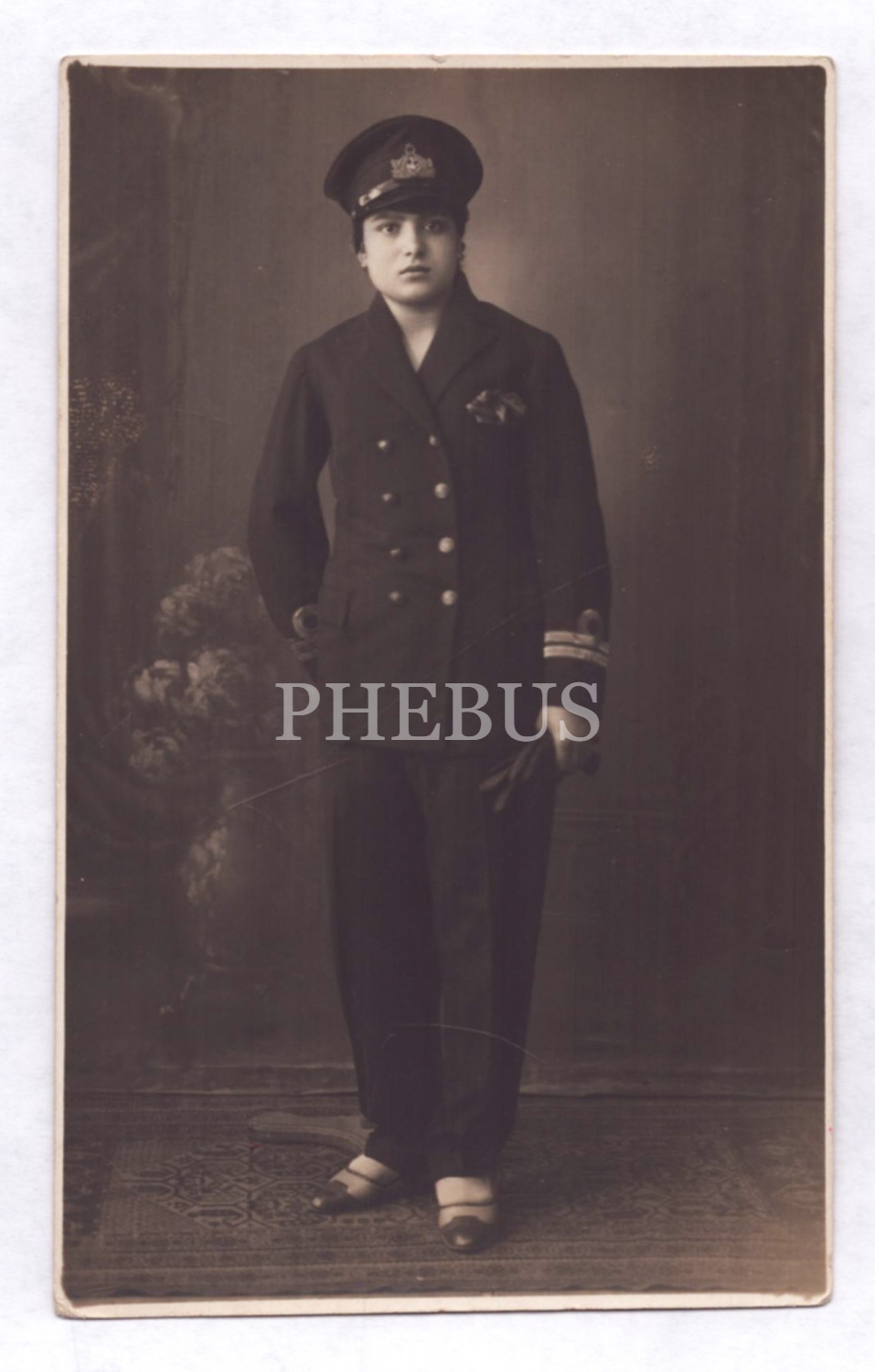 Bahriyeli üniformasıyla poz veren hanımefendi, 14x9 cm...
