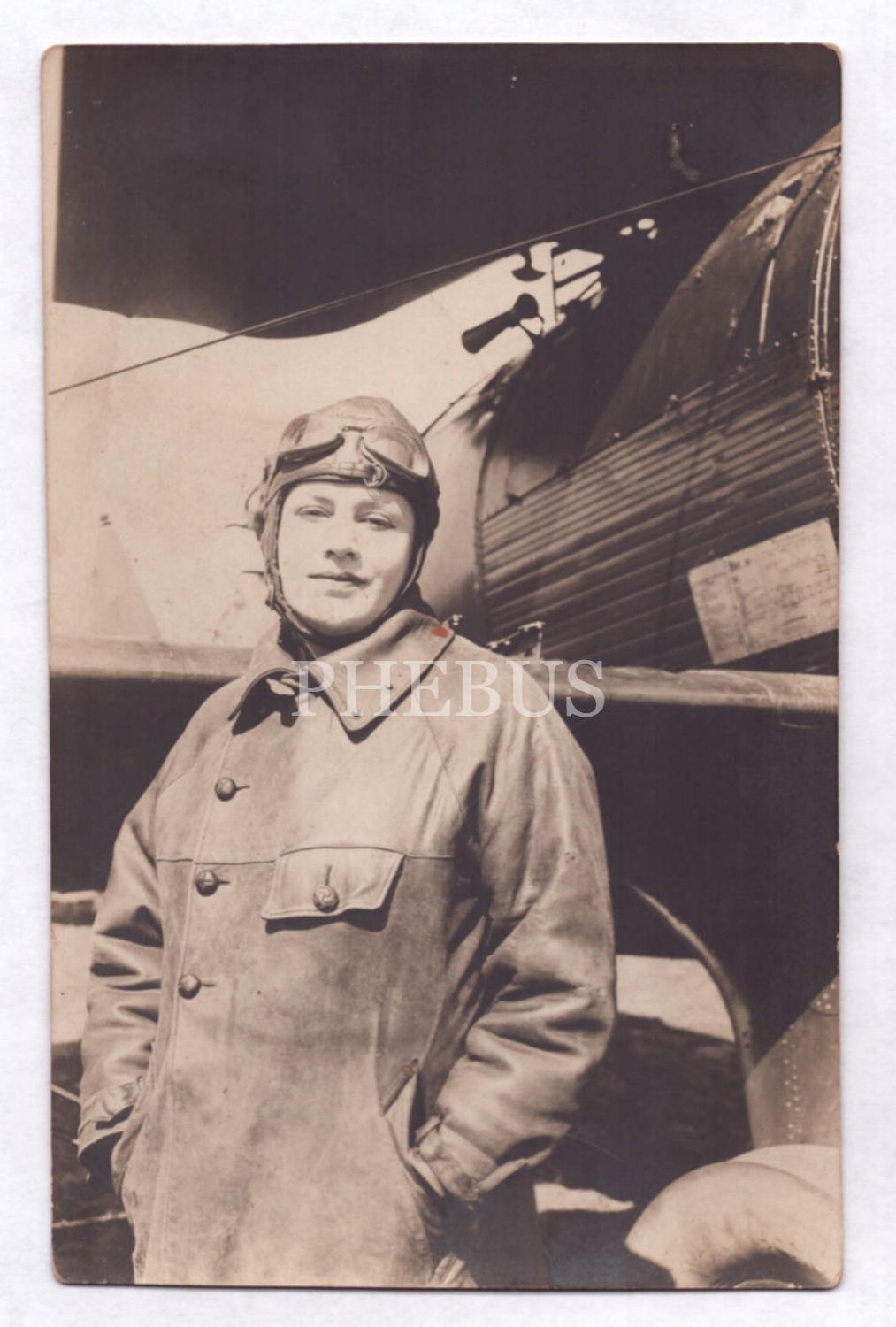 Tayyaresinin yanıbaşında poz veren kadın pilot, 14x9 cm...