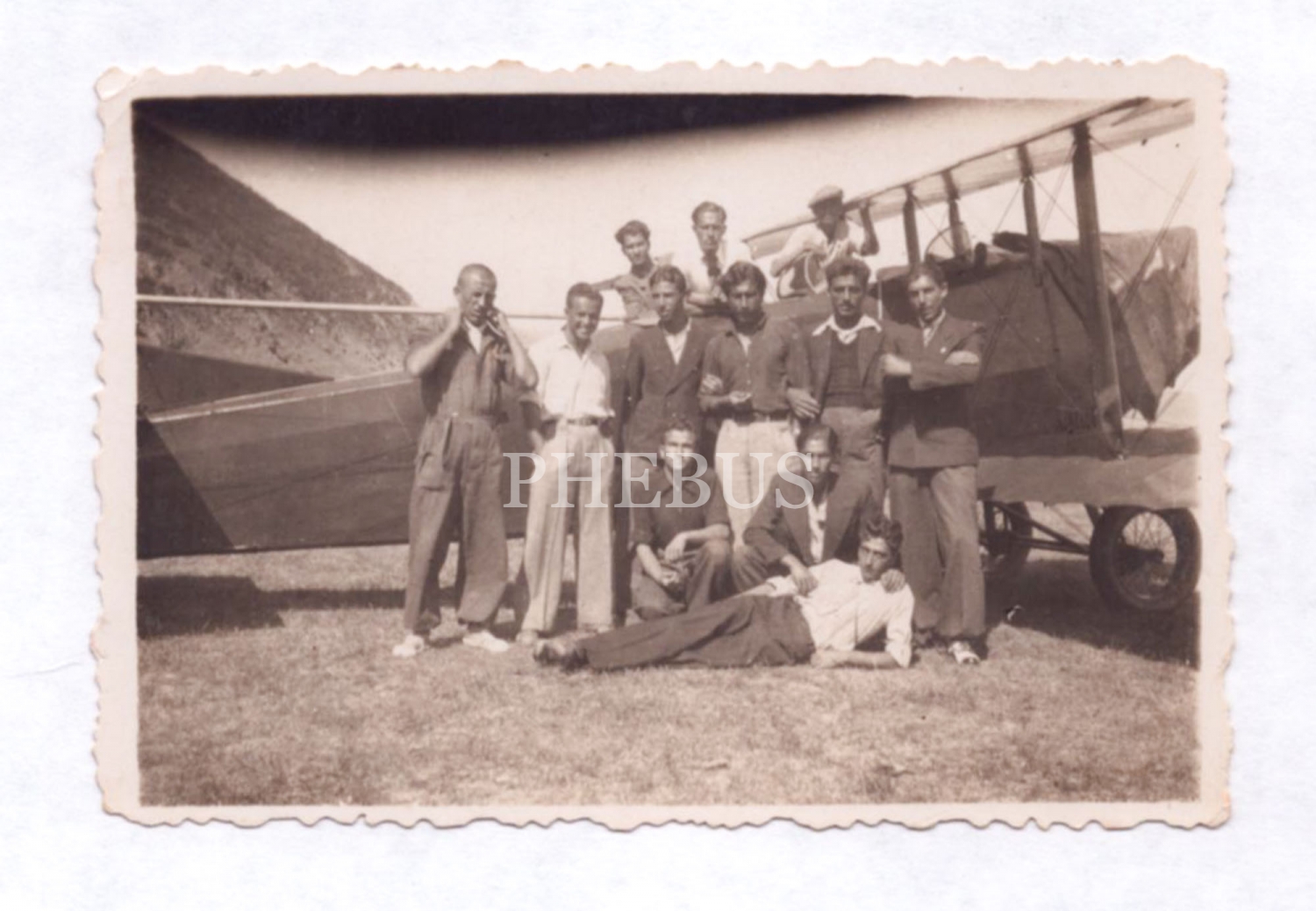 Tayyarenin yanıbaşında poz veren grubun hatıra fotoğrafı, 9x6 cm...