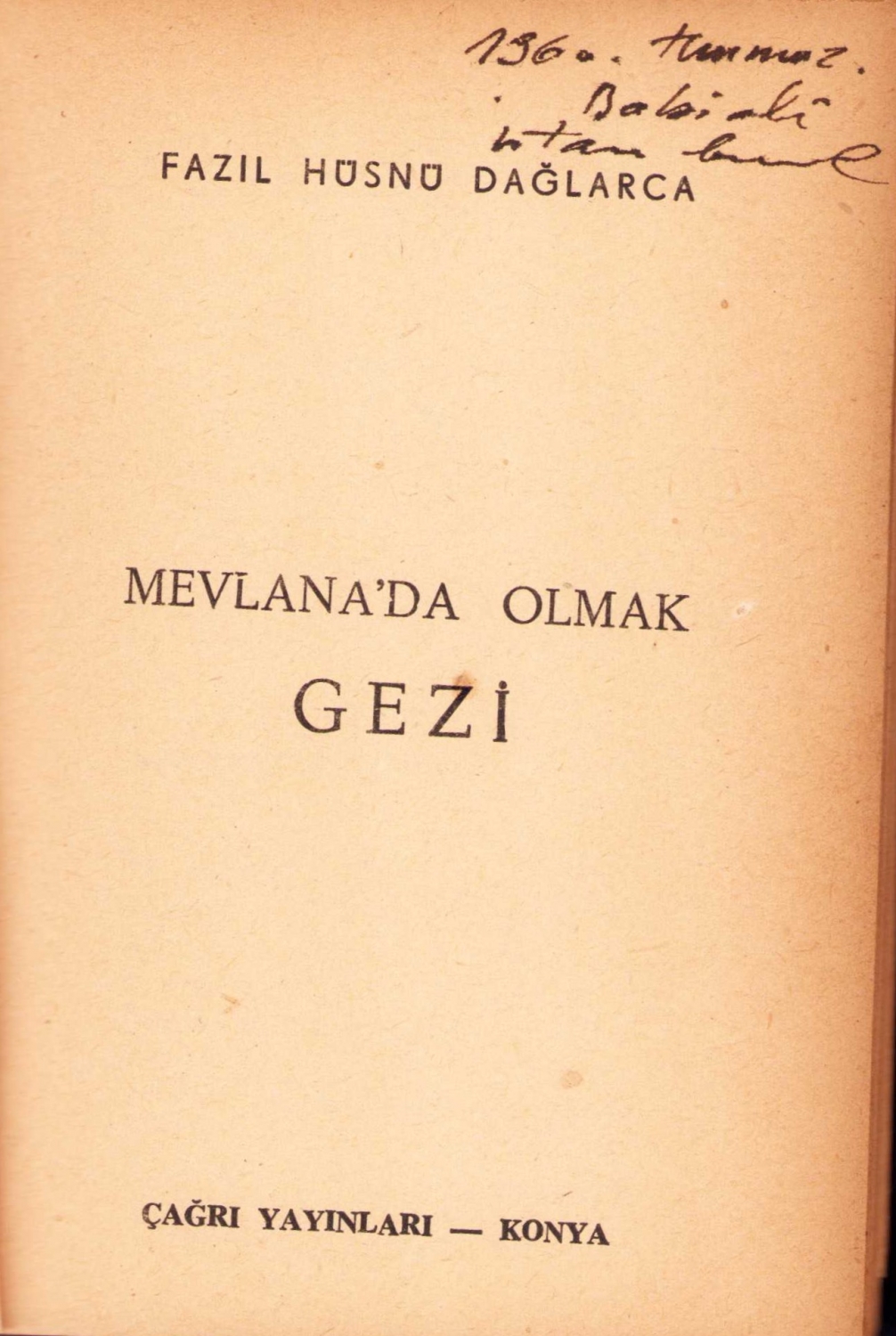 Mevlana'da Olmak, Fazıl Hüsnü Dağlarca, Konya, 1958, 45 sayfa, 11x15 cm