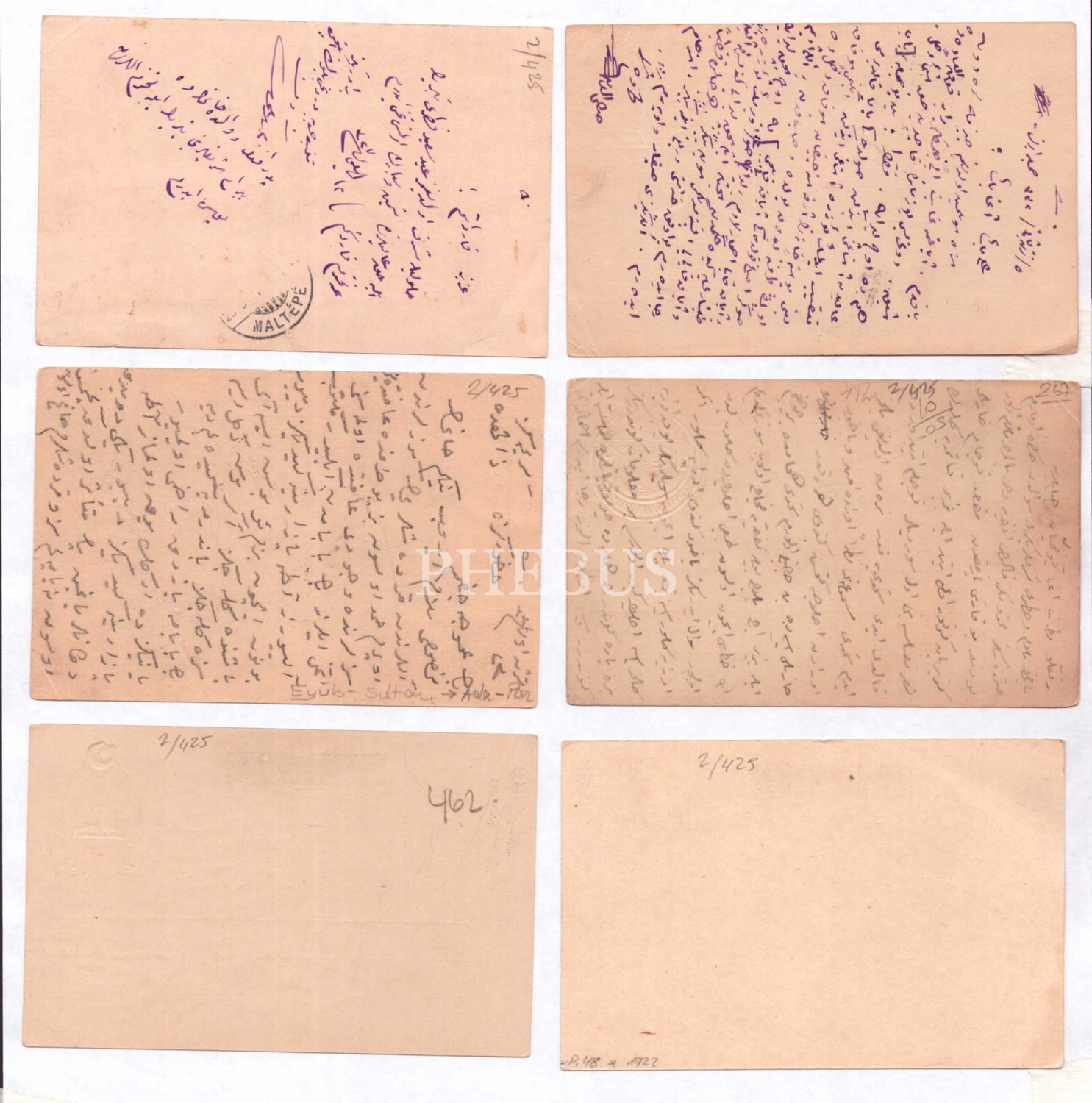Osmanlıca mektup kartpostalı, 6 adet, 14x9 cm...