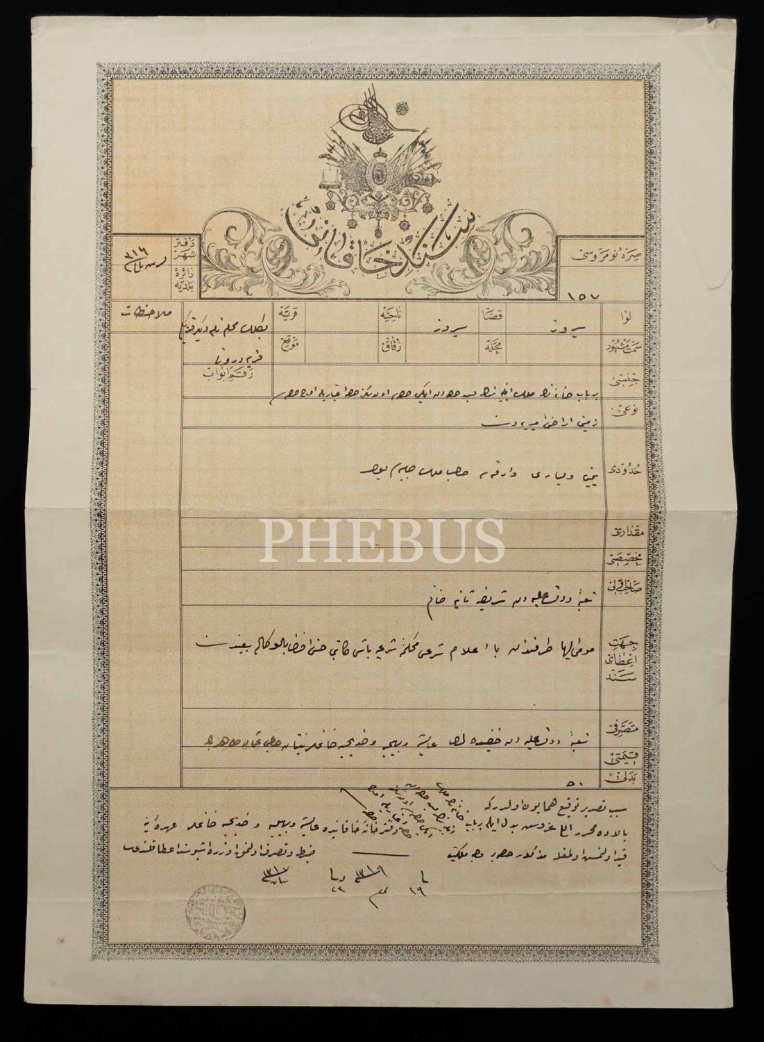 Serez (Yunanistan) ´de bulunan hanenin Şerife Saniye Hanım adına düzenlenmiş tapusu, 29x41 cm...