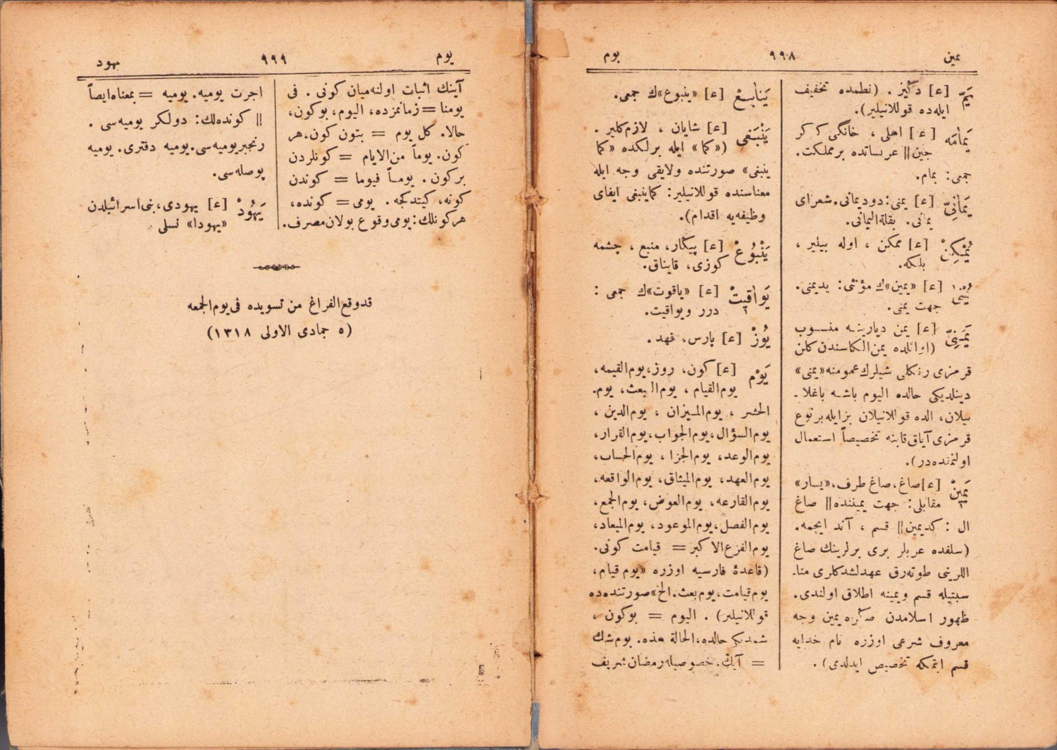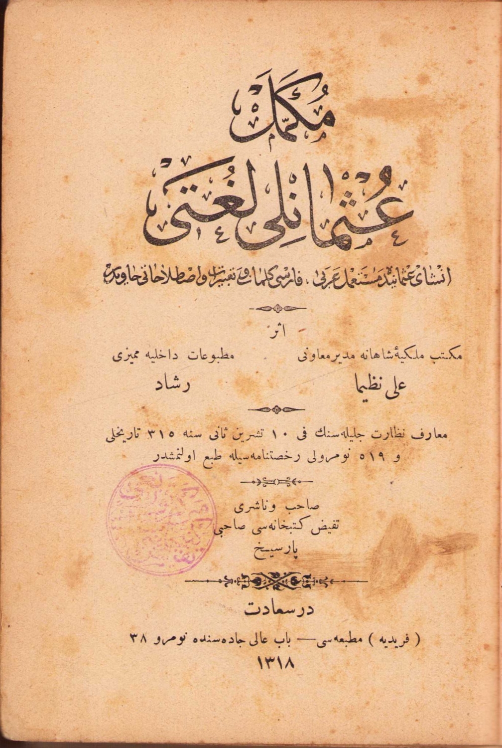 Osmanlıca Mükemmel Osmanlı Lugatı, Ali Nazima - Reşad Faik, Feridiye Matbaası, Dersaadet, 1318, cilt sırtı kopuk, kapak haliyle, 999 sayfa, 12x17 cm