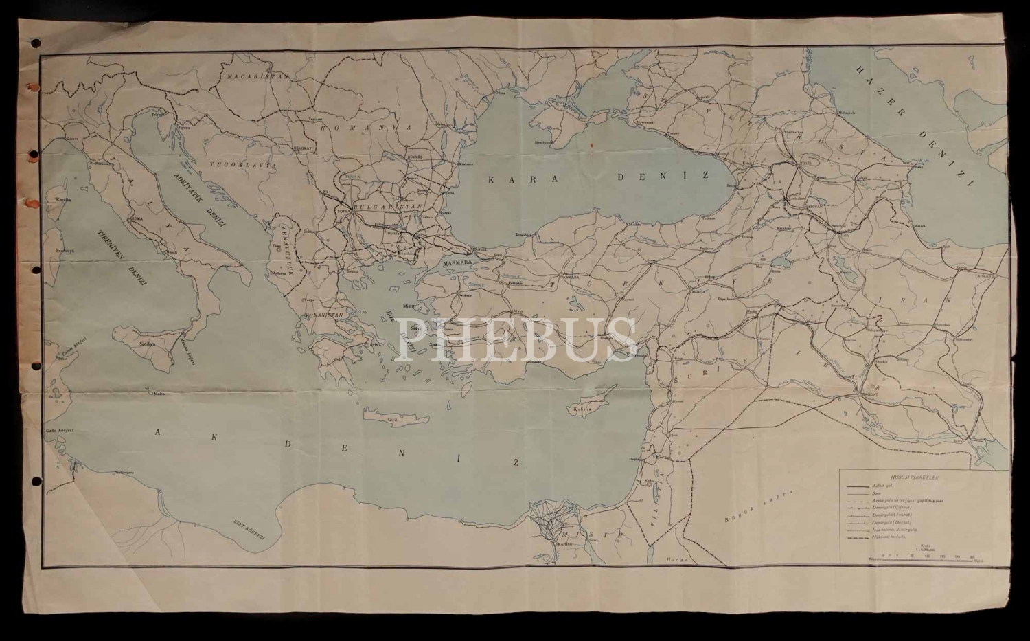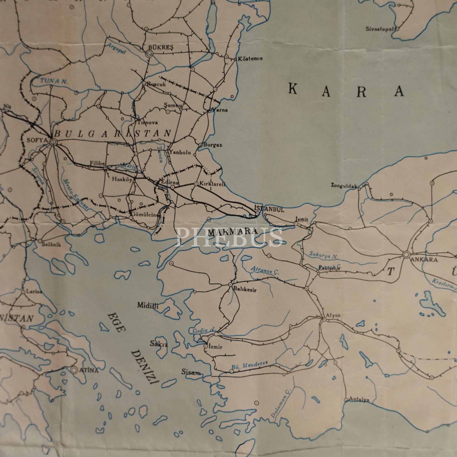 Türkiye ve Avrupa´nın bir kısmını kapsayan demiryolu haritası, 66x41 cm..